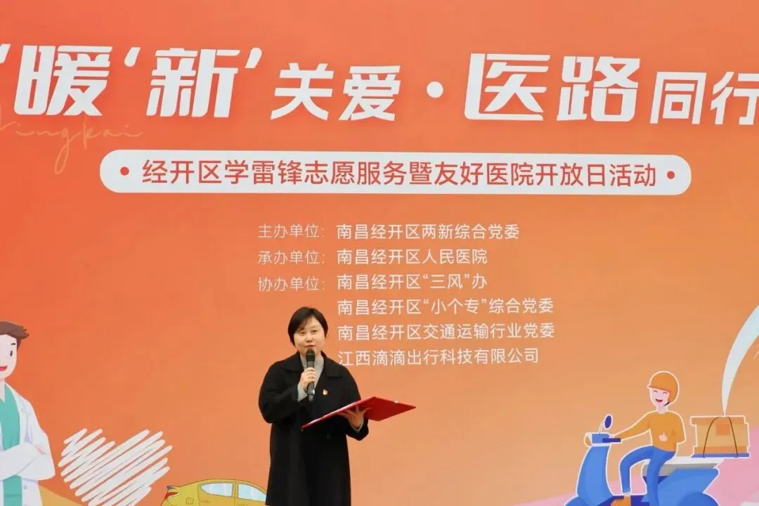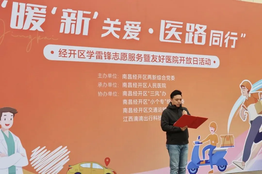 企业代表、滴滴出行江西城市群负责人李峥志发言,对区领导牵头搭建医企共建平台、护航新就业群体健康表示感谢,分享了医企携手共建、共同守护新就业群体健康的暖“新”心声,表达了将持续联动医院、为城市一线劳动者筑牢健康防线的意愿。