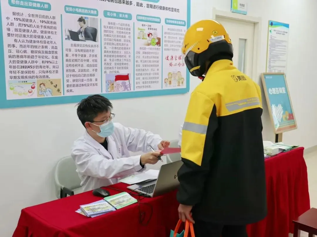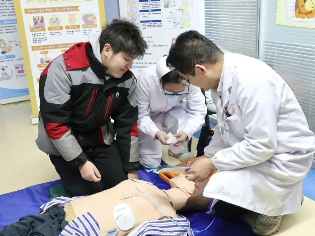 揭牌仪式后,出席领导在区人民医院党支部书记邓继红的引导讲解下,实地参观“友好医院”项目建设成效;新就业群体代表现场参与急救技能培训、健康义诊、心理疏导、家庭医生签约等志愿服务,同时领取了健康体检券与康复科理疗券,在沉浸式体验中感受便捷、贴心、专业的医疗关怀,切实增强了自身的获得感、幸福感、安全感。