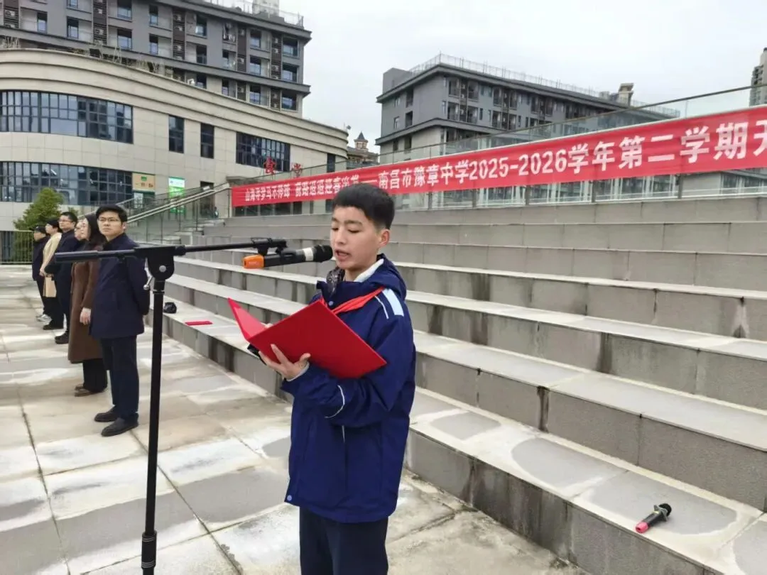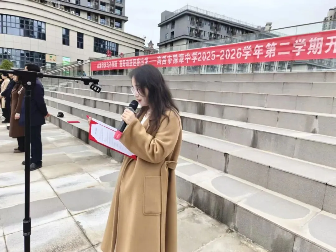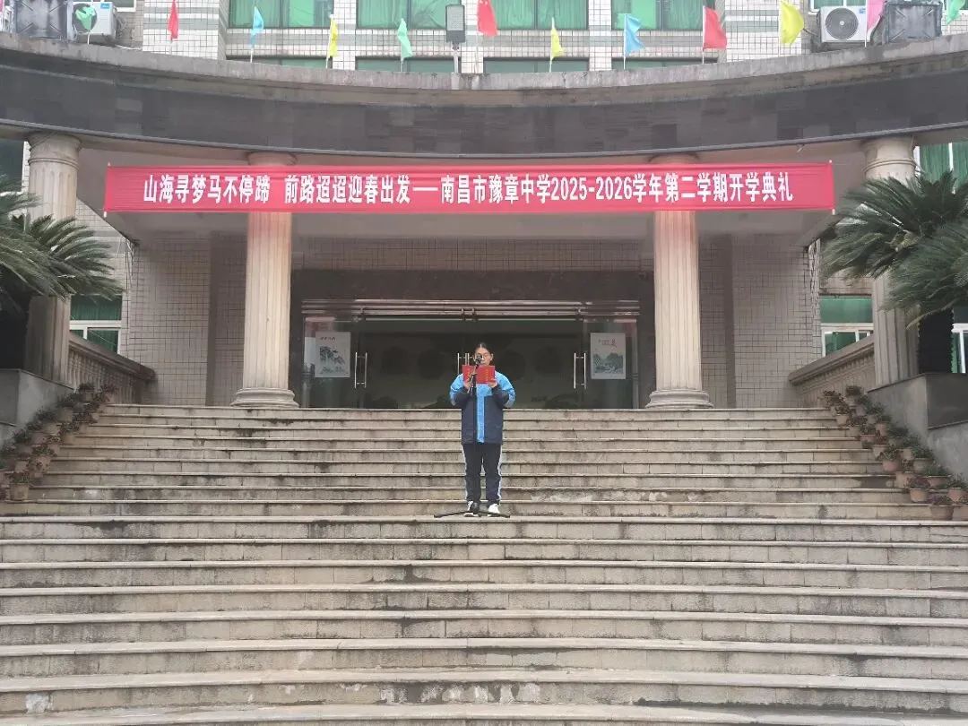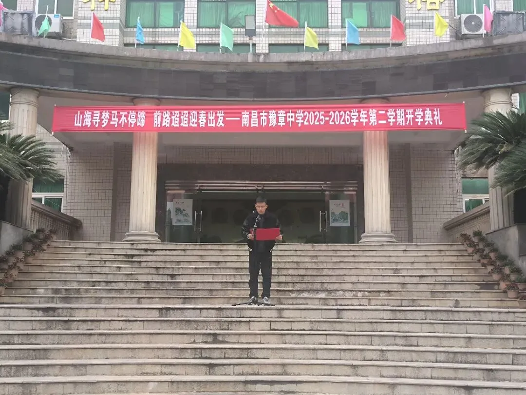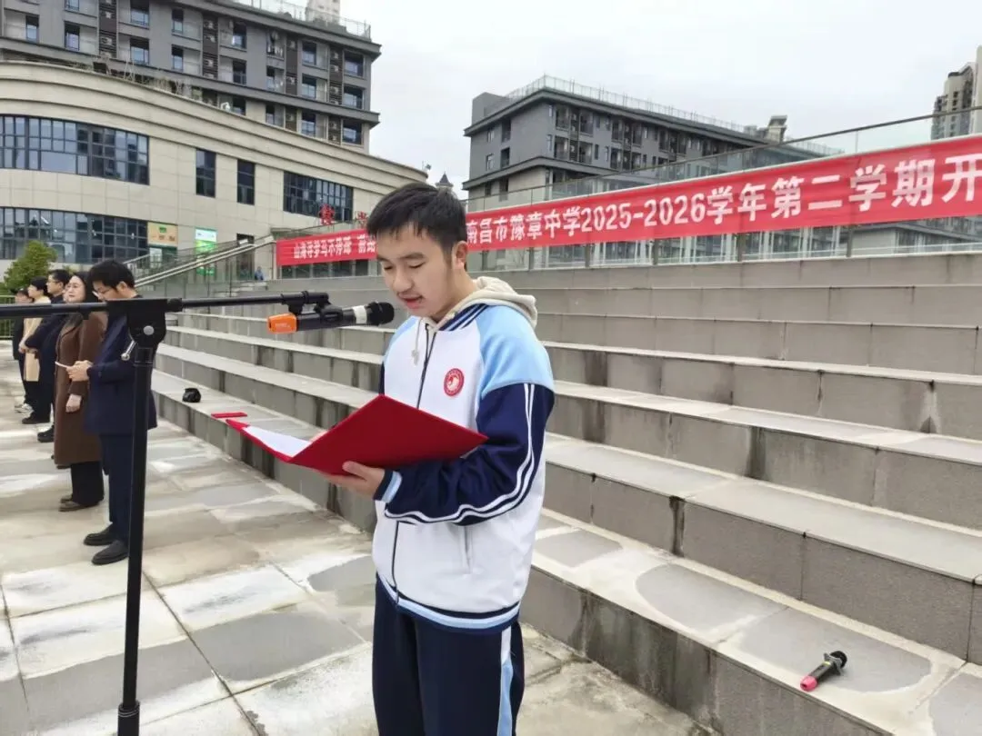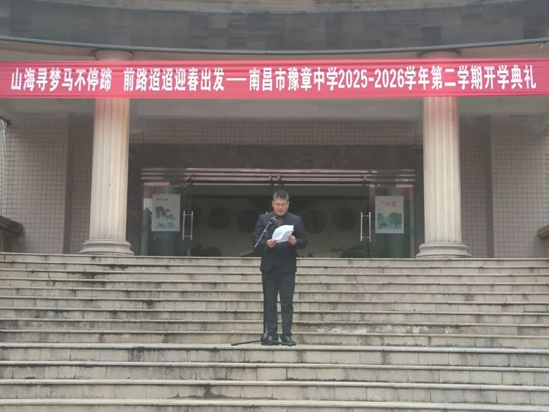 付红新在豫章路校区开学典礼上首先概括了上学期学校在教育教学工作中取得的优异成绩,表扬了全体师生的表现,并强调教师团队要继续秉承“诚朴明强”的校训,深化课堂教学改革,引领同学们的全面发展,为教育强国做出豫章贡献。他鼓励同学们再接再厉,“读书不觉已春深,一寸光阴一寸金”,扬帆起航,努力学习,快乐生活,发展深度学习的能力,培养核心素养,用成长与进步为自己的青春年华镀上绚丽的颜色,为中华民族的伟大复兴添砖加瓦。最终号召全体师生以马不停蹄的干劲,从春天出发,共赴新学期,作出新作为。