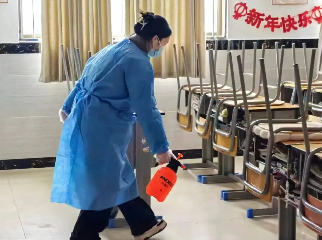 工作人员严格按照消杀规范,重点对教学楼、宿舍楼、食堂、走廊、卫生间、功能室等人员密集场所及高频接触区域进行细致消杀,确保不留盲区、不漏一角。