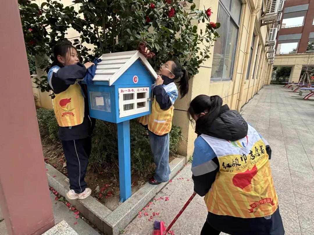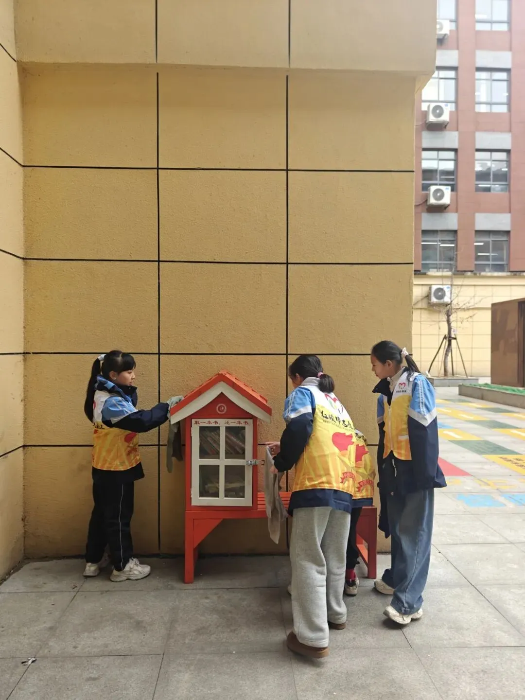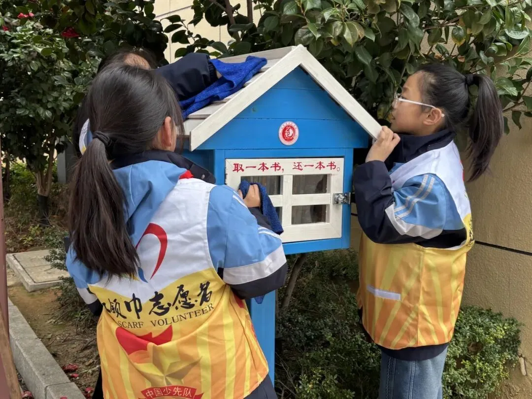 四年级的孩子们走进书屋,成为“文明阅读的守护者”。他们将轻轻擦拭书脊上积落的灰尘,仔细整理每一排书架的秩序,让书屋重归整洁与宁静。那一双双小手,不仅拂去了尘埃,更拂亮了心中对知识的敬畏、对公共空间的爱护。阳光下,身着红马甲的身影,将成为春日里最温暖的风景。