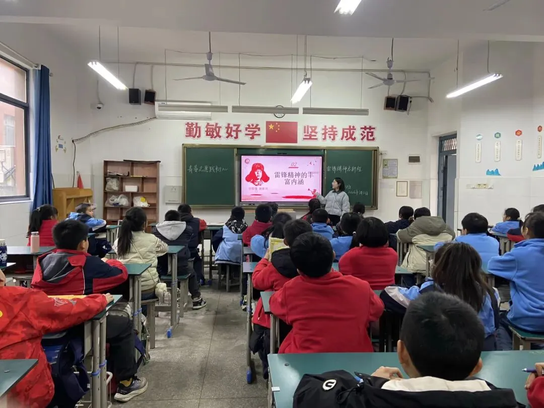五年级的教室里,一场场以雷锋为主题的班会正在悄然展开。黑板上,粉笔字写下“青春志愿践初心,雷锋精神启新程”;讲台上,老师讲述着雷锋的故事;座位间,孩子们热烈讨论、踊跃发言。那一刻,雷锋不再是一个遥远的名字,而是可感可触的精神力量,是每个人心中那份愿意帮助他人的纯真。