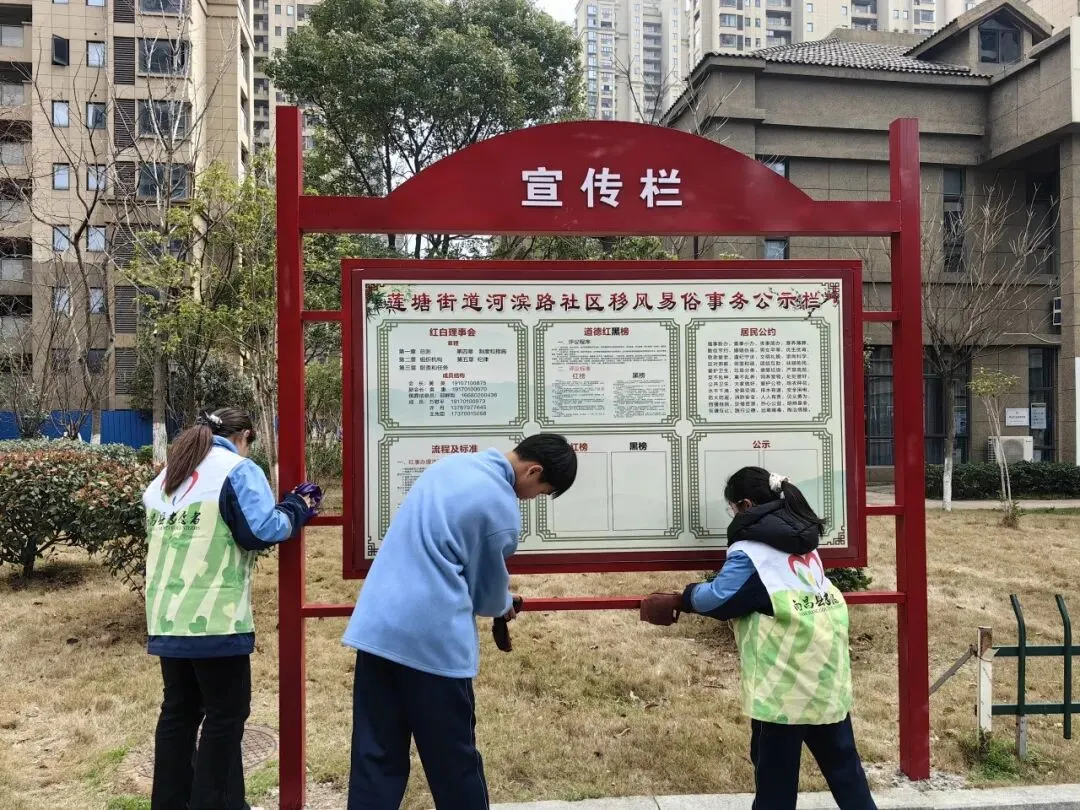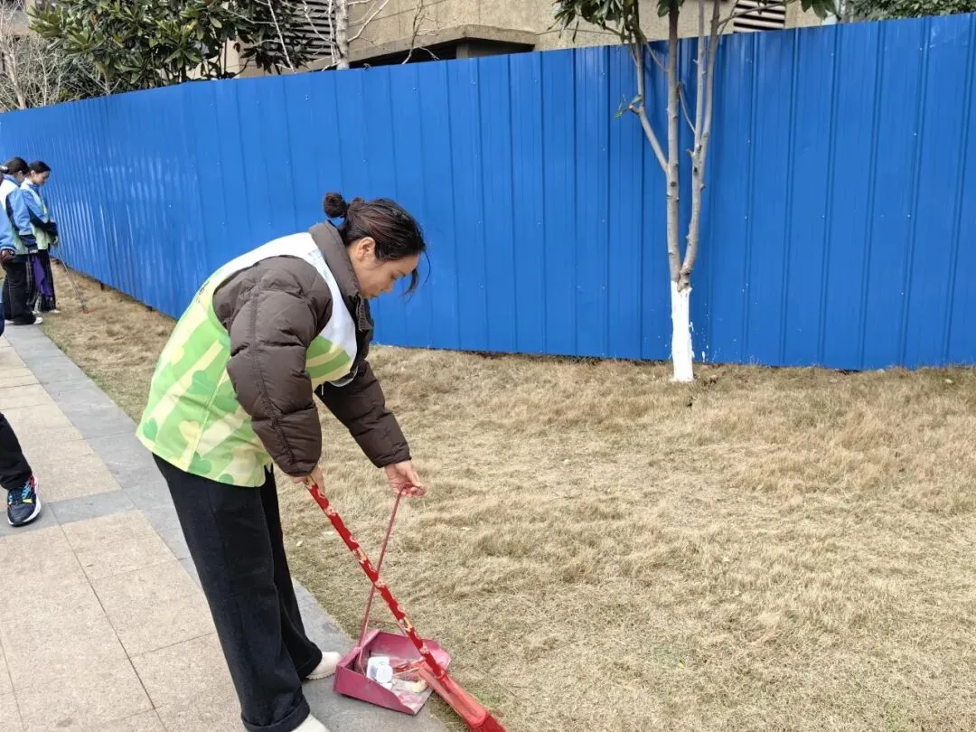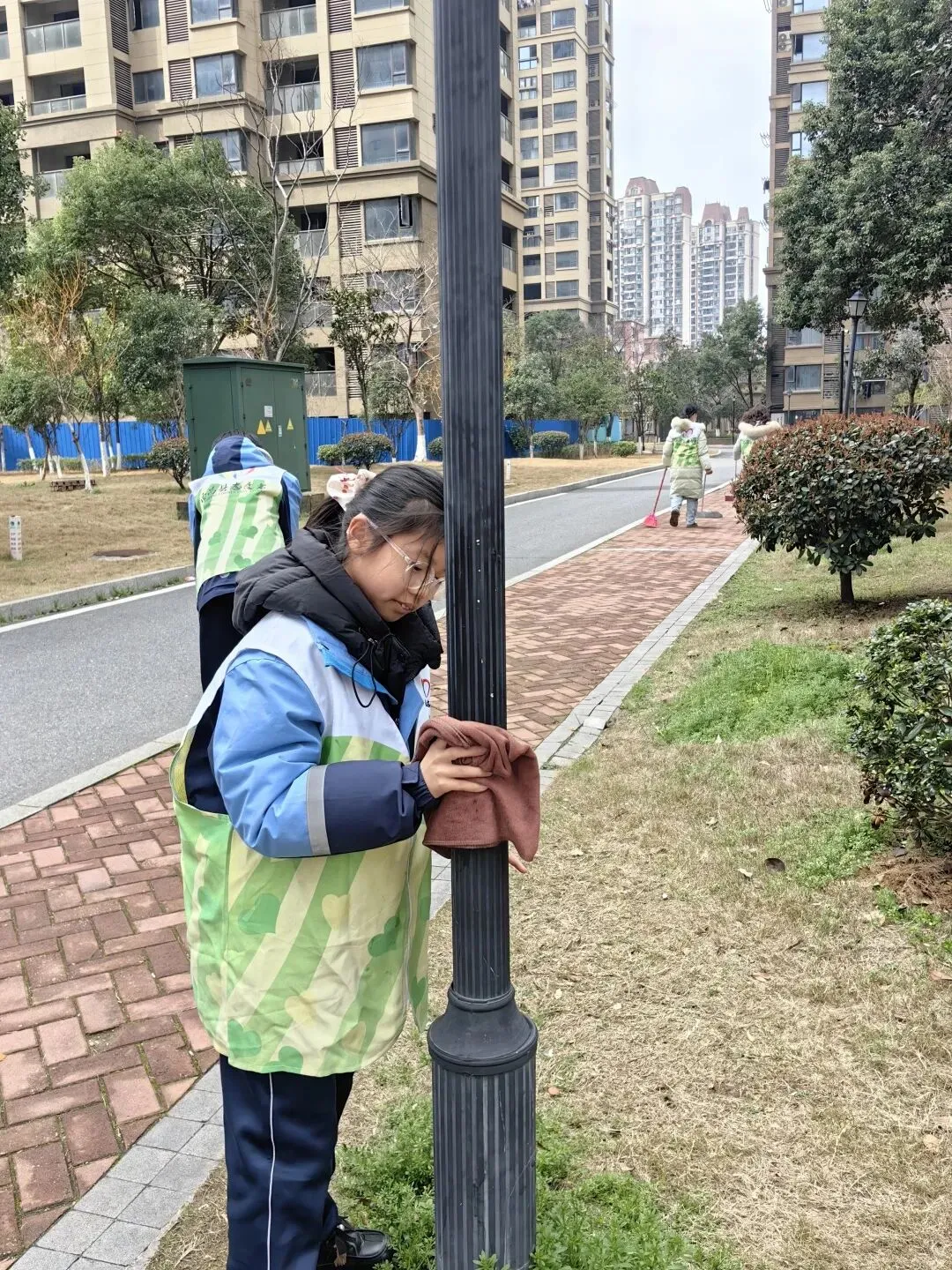 七年级的少年们在党员教师的带领下走进社区,化身 “美丽家园共建者”。他们俯身拾起路边的烟头纸屑,仔细擦拭长椅与宣传栏,耐心向居民宣传环保理念。午后的阳光洒在身上,汗水折射出青春的光彩。他们用实际行动诠释:文明,从不是一句口号,而是藏在举手投足间的温暖与担当。