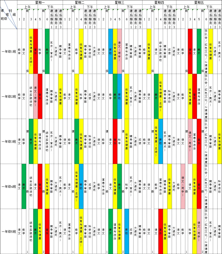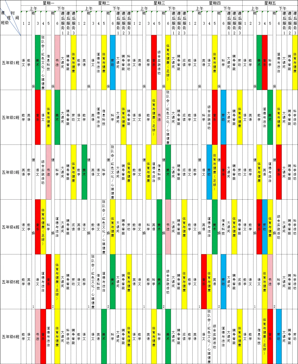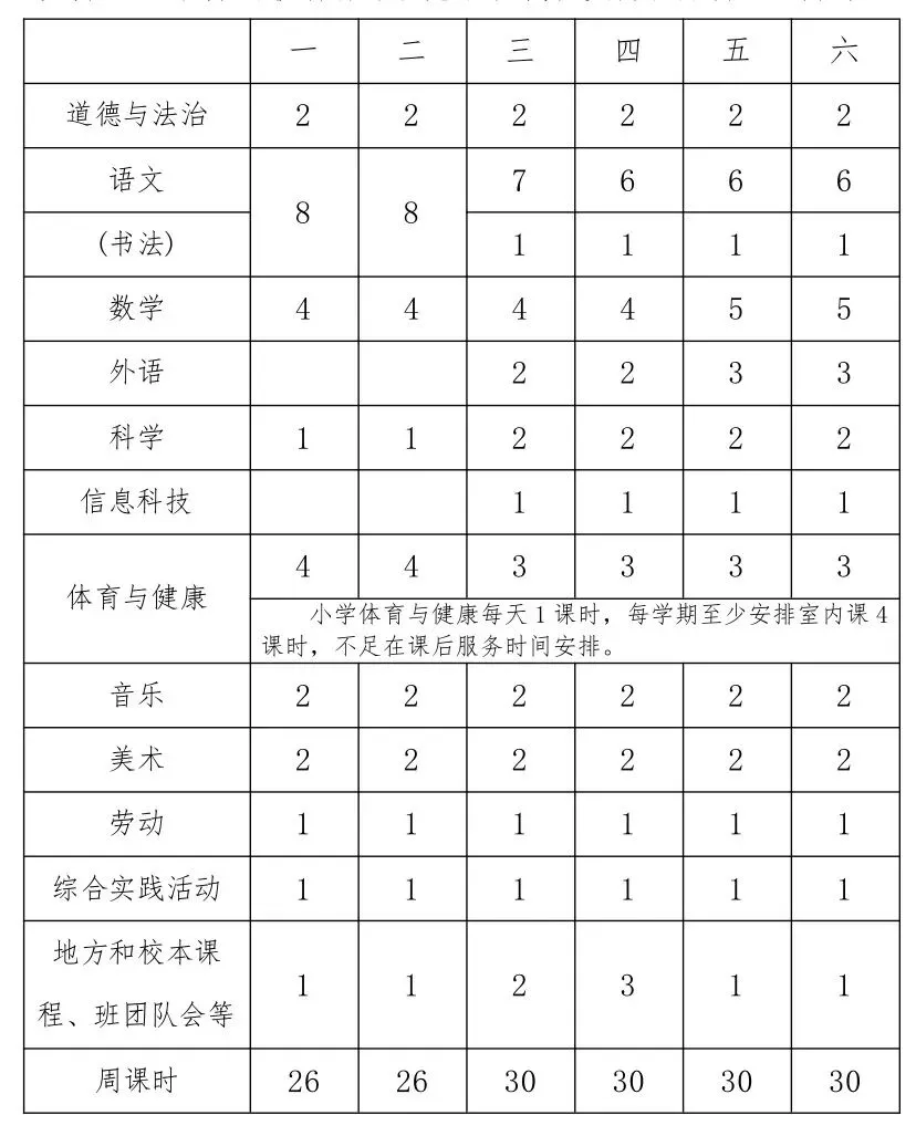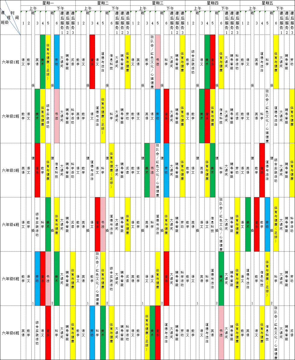 为深入贯彻落实《中共江西省委 江西省人民政府关于全面加强新时代大中小学劳动教育的实施意见》、《中共江西省委办公厅 江西省人民政府办公厅印发<关于全面加强和改进新时代学校体育工作的实施方案>和<关于全面加强和改进新时代学校美育工作的实施方案>的通知》等文件精神,我校严格落实国家课程方案和课程标准刚性要求,开足开齐体美劳课程,不减少、挤占体美劳教育课时,规范开展义务教育课后服务工作。现将2025-2026学年第二学期学校总课程表对家长进行公示,接受家长和社会监督,进一步推动落实“五育并举”。