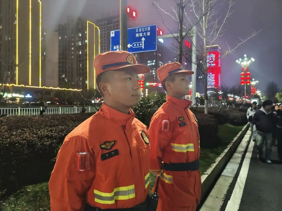 此次元宵烟花晚会为Ⅱ级燃放标准,规模盛大、人流密集,安全保障任务艰巨。为确保活动万无一失,大队闻令而动,抽调24名骨干力量组成执勤分队,协同当地公安部门驻守名人园南广场,全面扛起现场防火执勤与值守重任。大队提前实地踏勘现场,并对接相关部门细化联勤联动与应急处置方案,最终确定以定点执勤和动态巡查的方式开展安保工作。