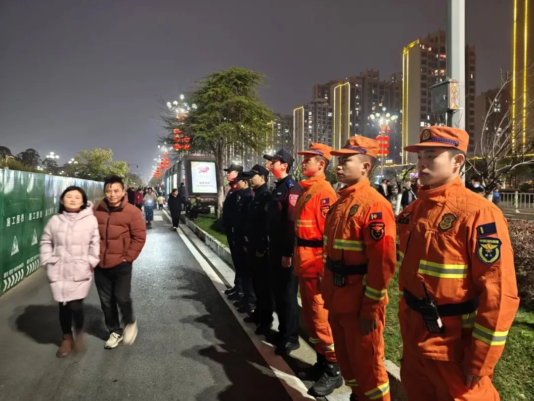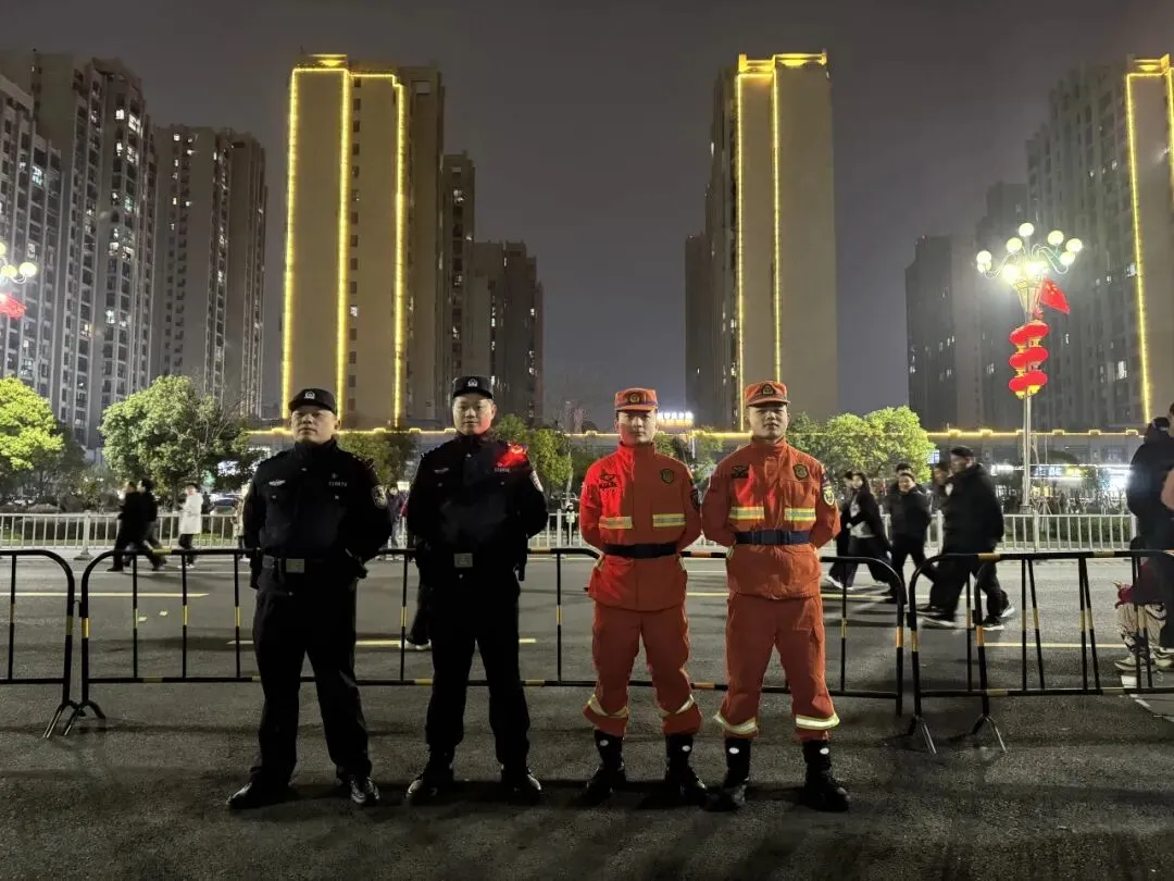 当夜空最后一束焰火落幕,人群渐次散去,大队坚守至现场清场完毕、确认无安全隐患后撤离,圆满完成此次安保任务。下一步,大队将以此为契机,不断提升应急处置和综合保障能力,以更加坚定的担当、更加务实的作风,守护辖区平安、服务人民群众。