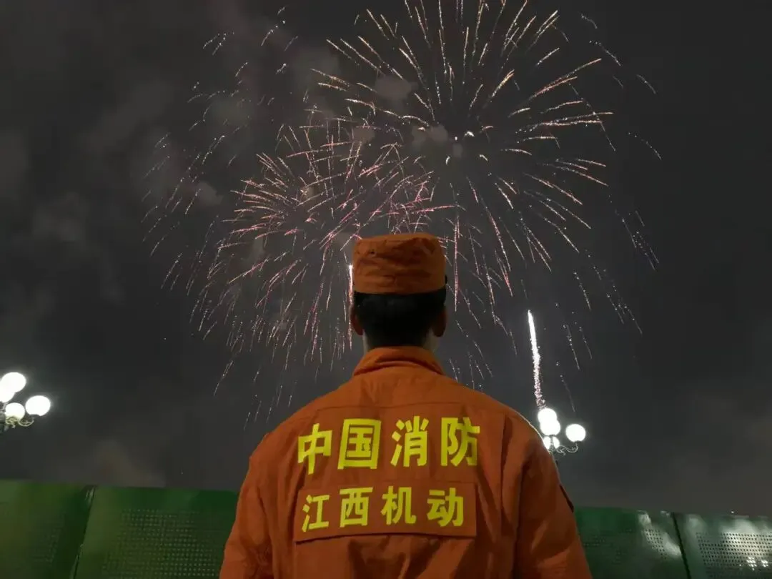 3月3日晚,以“才子之乡·文化之邦”为主题的2026年抚州市元宵烟花晚会在名人雕塑园璀璨绽放,30分钟高空焰火秀点亮夜空,为市民游客呈现了一场沉浸式视听盛宴。当众人沉醉于团圆喜乐之时,南昌消防救援机动支队抚州大队的“火焰蓝”坚守一线、枕戈待旦,在川流不息的人群中筑起一道坚不可摧的安全防线。