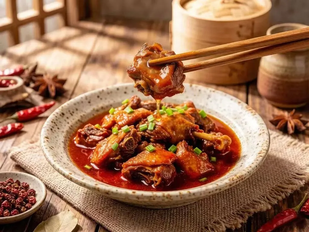 2.火候核心:此菜风味源于长时间小火慢煨,务必保持汤面微沸状态,使鸭肉纤维慢慢软化、充分吸收酱汁。大火烧开转小火的时机必须准确。