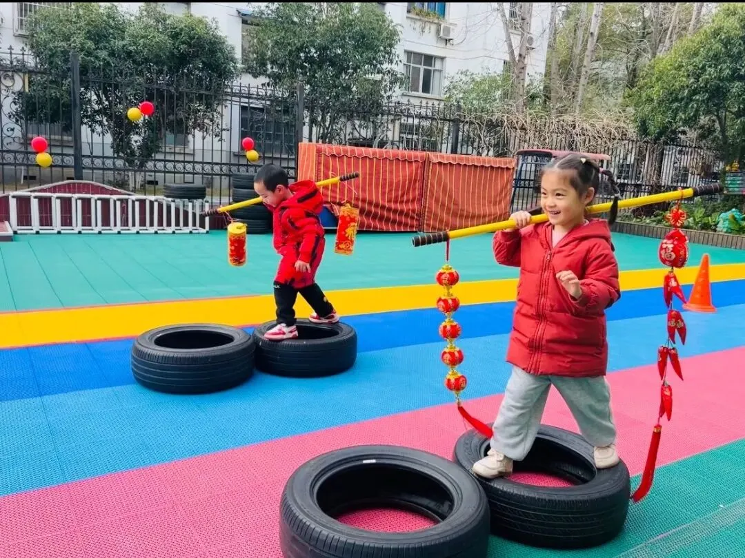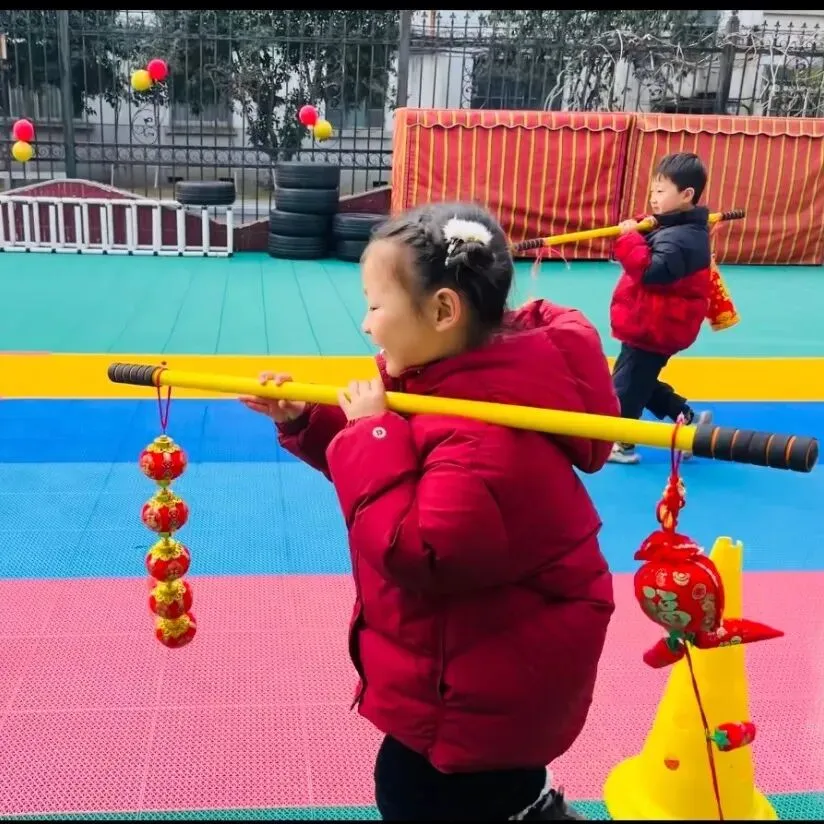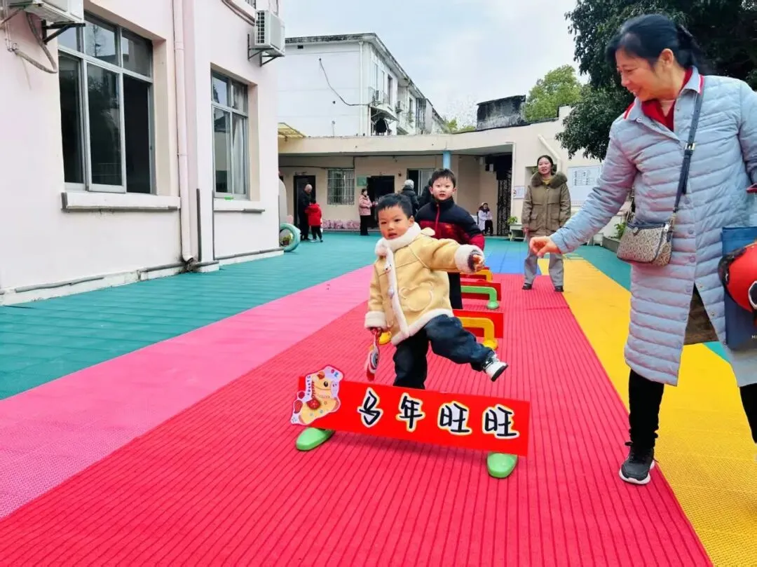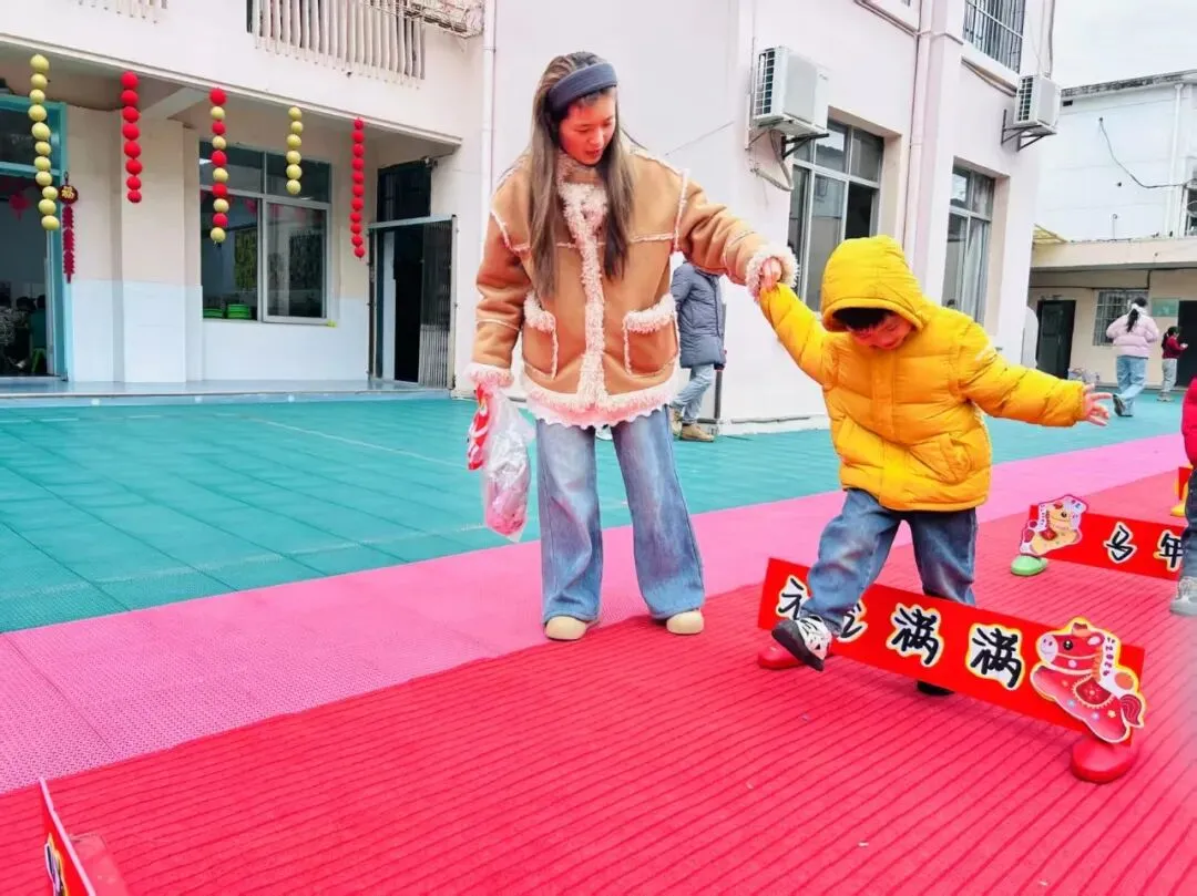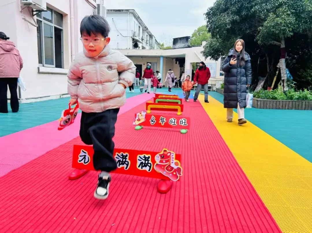 孩子们像小马驹一样鼓足勇气,依次向前跨越,每一步都踏得坚定有力,每一跃都带着满满的期待。这不仅是一次小小的挑战,更是成长的印记,寓意着在新的一年里,他们能如骏马奔腾般冲破阻碍,带着福气与勇气,奔向更精彩的未来。
