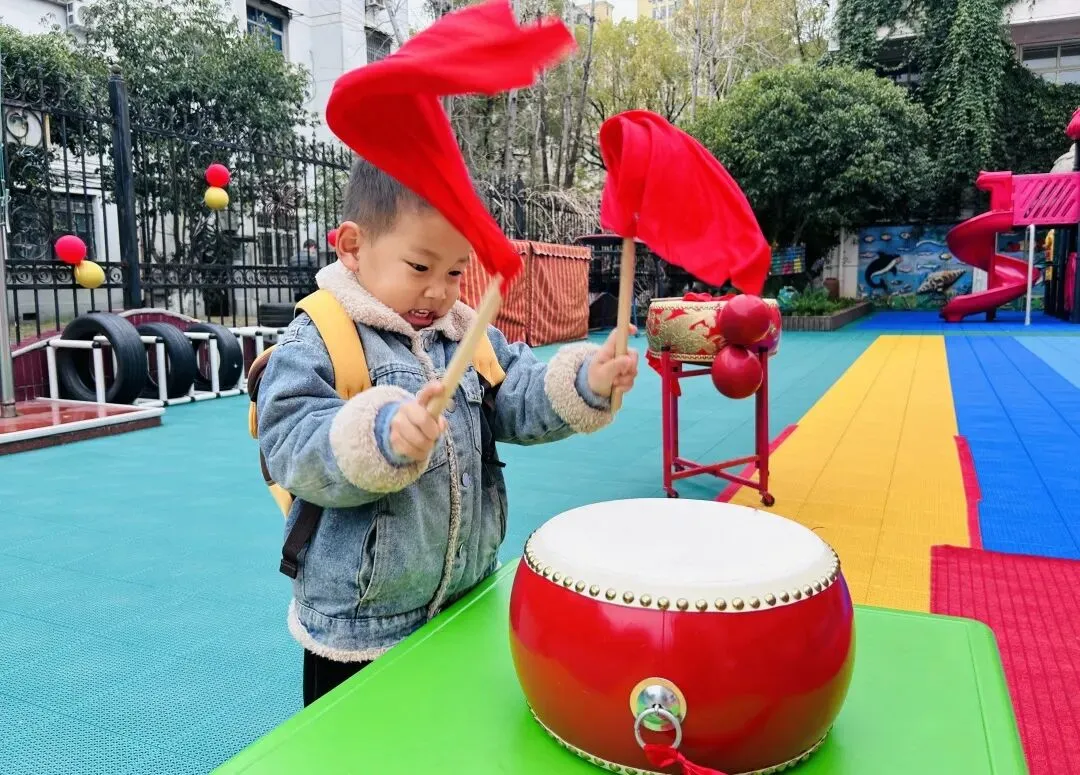 鼓声阵阵,意气飞扬。萌娃们依次击鼓,一声立志、二声启智、三声成长,稚嫩而坚定的声响,是对新学期的美好期许,愿孩子们如小马般勇敢向前,活力满满。