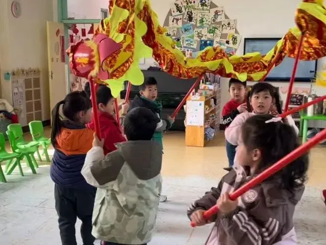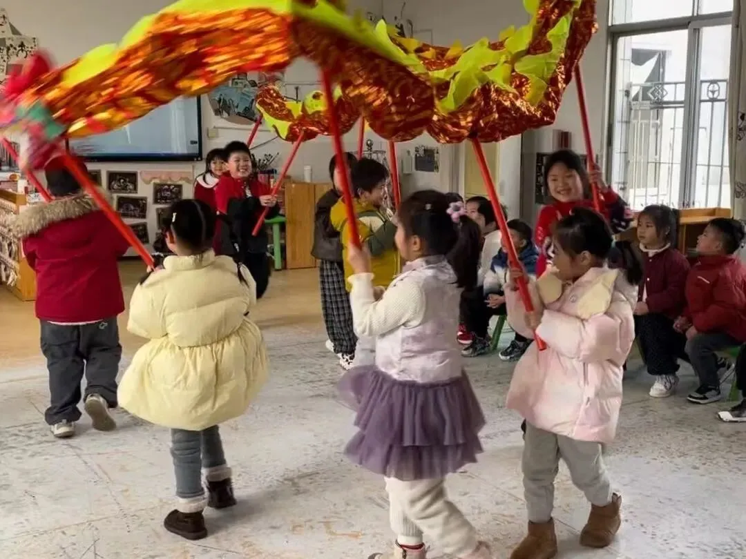 开学即邂逅元宵佳节,孩子们通过游戏舀汤圆、挑灯笼、舞龙......趣闹元宵。