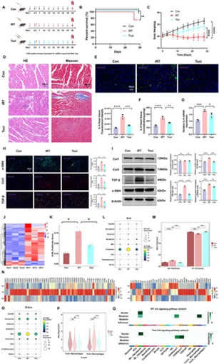近年来,对肿瘤免疫微环境和免疫逃逸机制的深刻认识引发了肿瘤治疗的范式转变,以靶向PD‑1/PD‑L1和CTLA‑4为代表的免疫检查点抑制剂(ICI)彻底改变了恶性肿瘤的治疗模式。临床试验与真实世界应用均显示,包含ICI的联合治疗策略展现出巨大前景。以PACIFIC研究为代表的多项研究表明,在放化疗后给予抗PD‑1/PD‑L1治疗可显著延长肺癌患者的总生存期。然而,ICI治疗介导的免疫毒性,叠加放疗所诱发的不良反应,可能对胸腔重要脏器造成累积性损伤,最终限制联合方案的疗效,并降低肿瘤患者的生活质量。已有研究证实,放疗可导致照射区域组织损伤,而胸部放疗过程中心脏损伤往往难以避免。作为最严重的远期并发症,放射性心脏损伤(RIHD)均会显著降低患者的长期生存预后。ICI触发的免疫相关不良事件(irAEs)可累及多器官损伤。ICI诱发的心肌炎因死亡率极高而备受关注。心脏纤维化是免疫治疗或放疗所致心肌损伤共同的核心病理过程。尽管纤维化初期具有保护作用,但持续进展的纤维化可导致心室僵硬、心力衰竭及心律失常性猝死。目前已有部分研究探讨单纯放疗或单纯ICI所致心脏损伤的机制,但二者联合治疗引发心脏损伤的风险及潜在机制仍处于初步探索阶段。值得注意的是,两项针对局部晚期非小细胞肺癌(NSCLC)的临床研究显示,接受根治性放化疗后ICI维持治疗的患者,其心血管事件发生率高于安慰剂维持组。关于放疗联合ICI诱发心脏毒性的机制,有限研究提示其可能与心肌微环境中CD8⁺T淋巴细胞浸润增加、自身免疫反应增强并进一步加重心肌损伤有关。鉴于放疗联合ICI方案在肿瘤领域的应用日益广泛,深入阐明其心脏毒性的内在机制,对于预防和管理该联合方案相关的心血管损伤至关重要。为全面解析该联合治疗所致心脏损伤的复杂调控机制,本研究基于放射免疫治疗小鼠模型构建了单细胞转录组测序(scRNA‑seq)图谱,系统解析了心脏各细胞组分及其亚群比例变化,并揭示了心脏微环境中成纤维细胞与免疫细胞之间复杂的信号级联反应及调控网络。此外,本研究结合临床与临床前证据,旨在筛选可减轻心脏纤维化的潜在治疗靶点。https://doi.org/10.1002/advs.202519216
