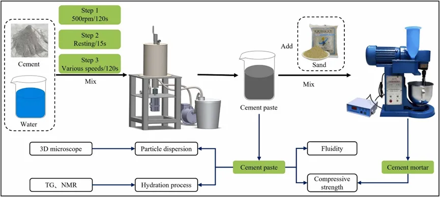 2.高强度搅拌方法使水泥颗粒变得更加活跃,相互碰撞的机会增加,颗粒更容易摆脱静电引力,均匀分散到水中,使水泥与水充分接触,进一步加速了水化反应。