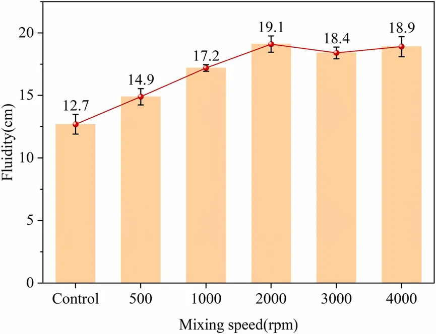 图4.高强度混合对水泥浆流动性的影响