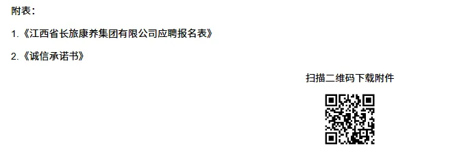 应聘人员填写《江西省长旅康养集团有限公司应聘报名表》,并提交本人身份证、学历学位(含学信网认证材料)、职称、执(职)业资格、荣誉奖项、工作经历和业绩等相关证明材料扫描件至指定招聘邮箱jxkysyrlzyb@163.com。