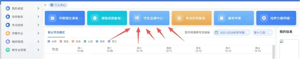 注意:选课完毕之后,请务必进入“个人课表信息”核实课程是否选课成功。