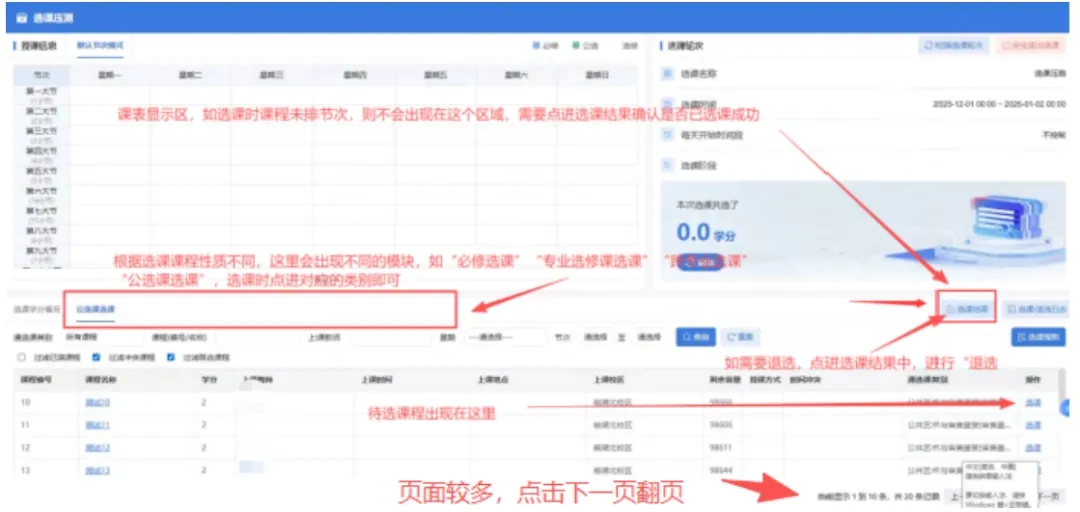 如需退选,在“选课结果”中找到课程,点击“退选”即可。选完之后,请同学们再次核对选课结果。