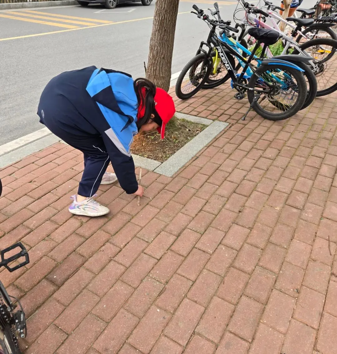 班会后,志愿者们走进校园周边开展文明实践服务。大家分工协作、认真细致,将路边乱停乱放的单车逐一扶正、规范摆放,同时清理路面垃圾、杂物。同学们不怕脏、不怕累,用双手美化环境、维护秩序,用青春行动诠释“奉献、友爱、互助、进步”的志愿精神,展现了培英学子积极向上、文明有礼的良好风貌。