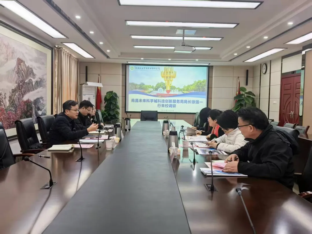 2026年3月2日,南昌未来科学城科技创新服务局局长徐强、红谷滩区商务局制造业招商二部部长喻立珊等一行莅临我校,双方就开展合作进行对接交流。副校长胡晖主持座谈会,产学研培发展中心主任万颖、机电工程系负责人傅艳华等陪同现场考察。