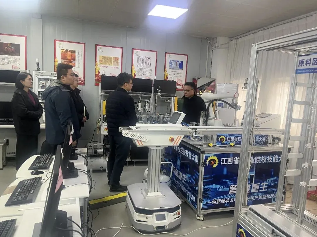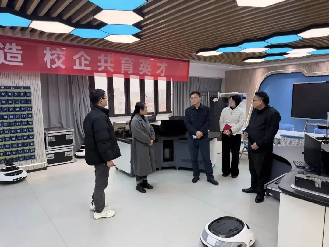 考察团一行先后参观了我校产教融合大楼、智能制造中心以及先进制造精密加工中心等实训场所。参观过程中,机电工程系李洪娟详细介绍了工业机器人技术专业群在产教融合、人才培养及社会服务等方面的办学成果。来访领导对我校先进的实训设备、理实一体的教学模式以及“校企共建、资源共享”的办学理念给予了高度肯定和赞许。