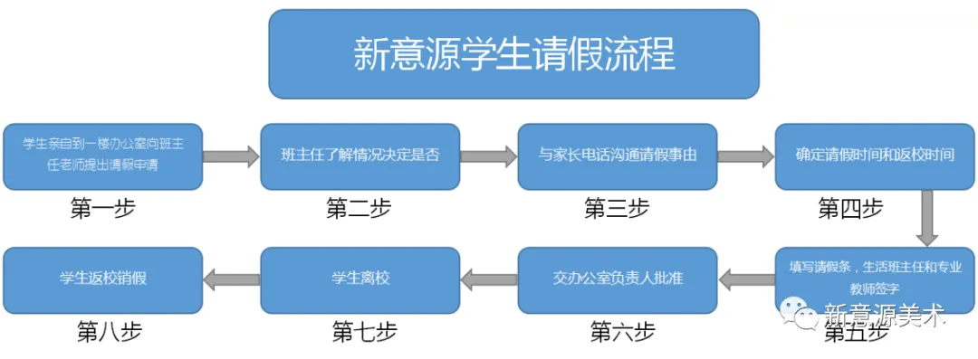 南昌新意源美术学校对学生请假流程实行严格管理,确保学生的安全与学习秩序。具体流程如下: