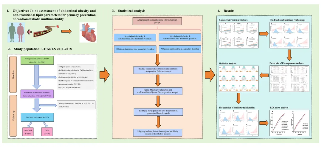 首次系统探讨腹部肥胖与非传统血脂参数在CMM中的联合与中介作用。