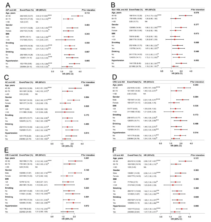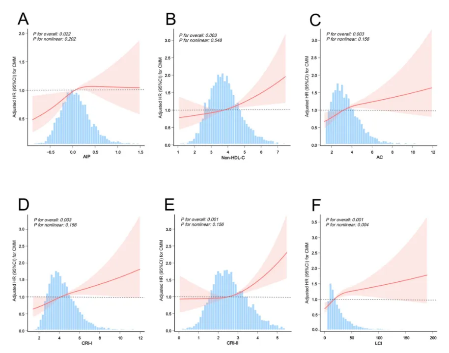 腹部肥胖+高非传统血脂参数组的CMM累积风险最高(HR最高达2.23)。