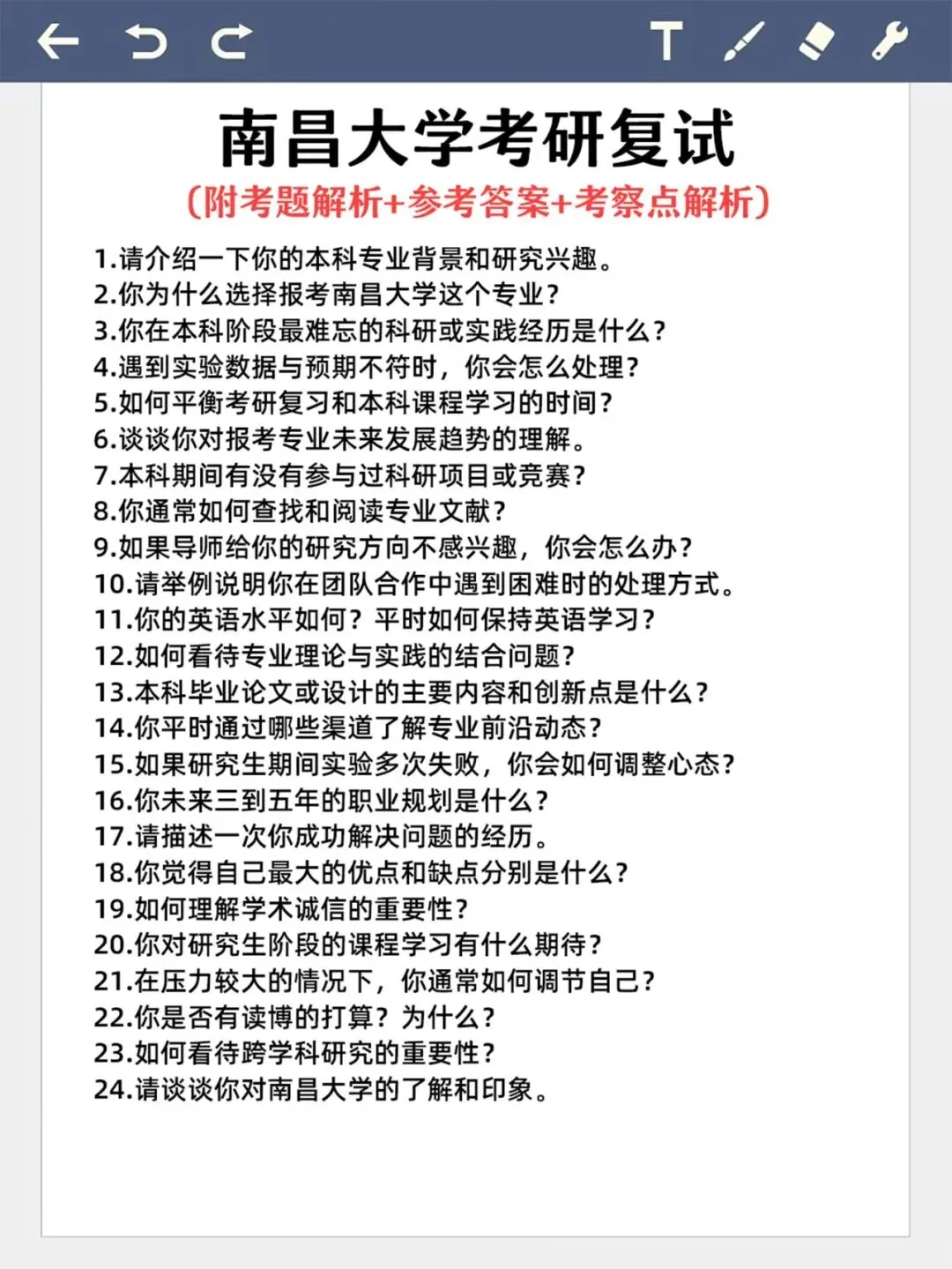 >南昌大学考研复试必看面经搜集往届珍题
