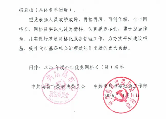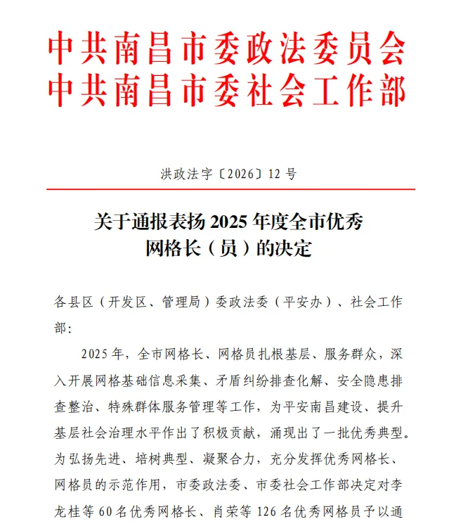 喜报!站前街道陈瑶获评 2025 年度南昌市优秀网格长