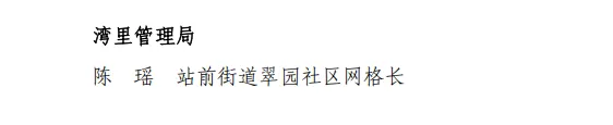 自担任翠园社区网格长以来,陈瑶始终以党建为引领,锚定 “强班子、筑支部、优服务” 目标,扎根网格治理一线,以雷厉风行的作风、求真务实的态度,把 “实干担当” 刻在岗位上,把 “为民服务” 融在细节里,成为基层治理的 “排头兵”、辖区居民的 “贴心人”,用实际行动诠释了新时代网格长的责任与使命。