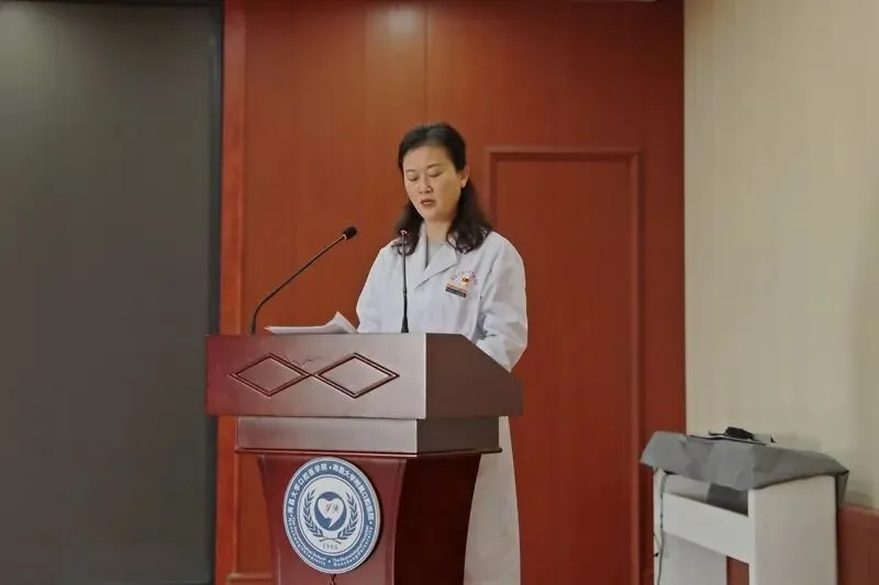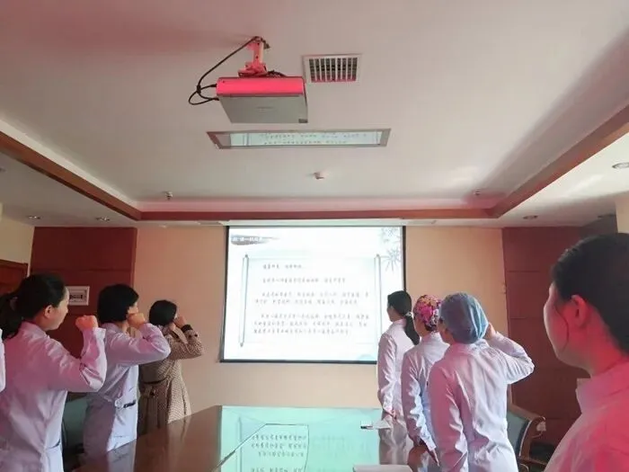 活动第四环节是诵一段经典。在党委书记廖岚的带领下,大家一起诵读了初入学时的医学誓言,通过经典字句希望让大家能够用当初的誓言来严格要求自己,做到严以修身,诚心行医,严以用权,依法行医,严以律己,廉洁行医。全心全意为患者服务。