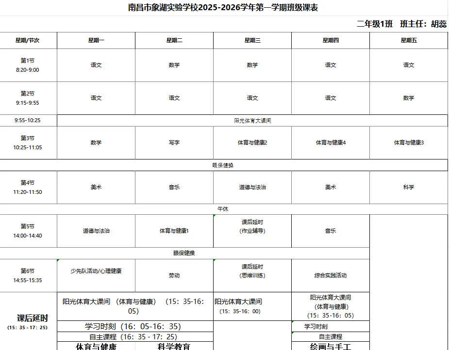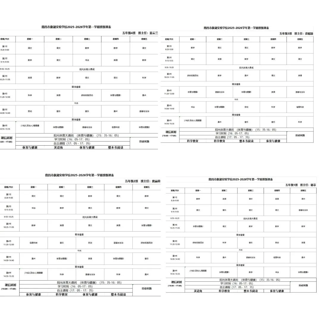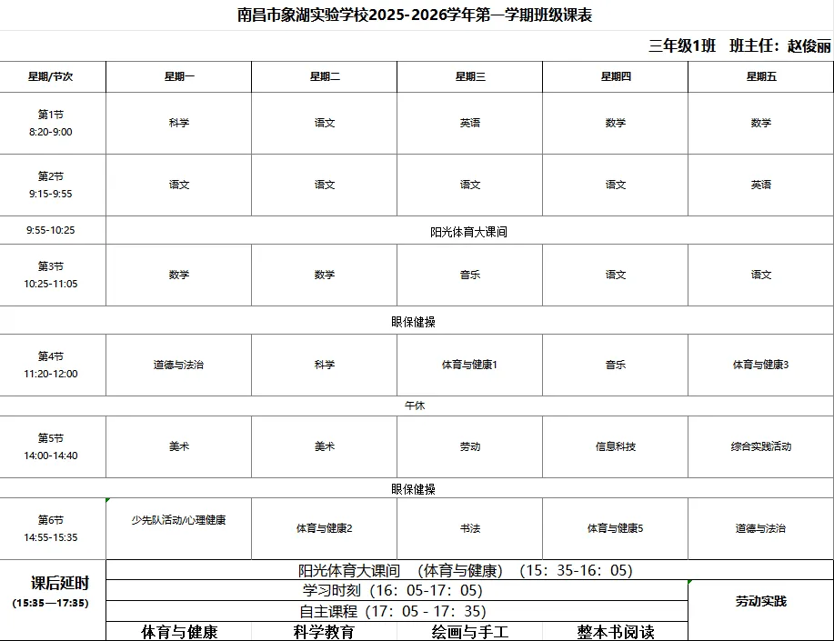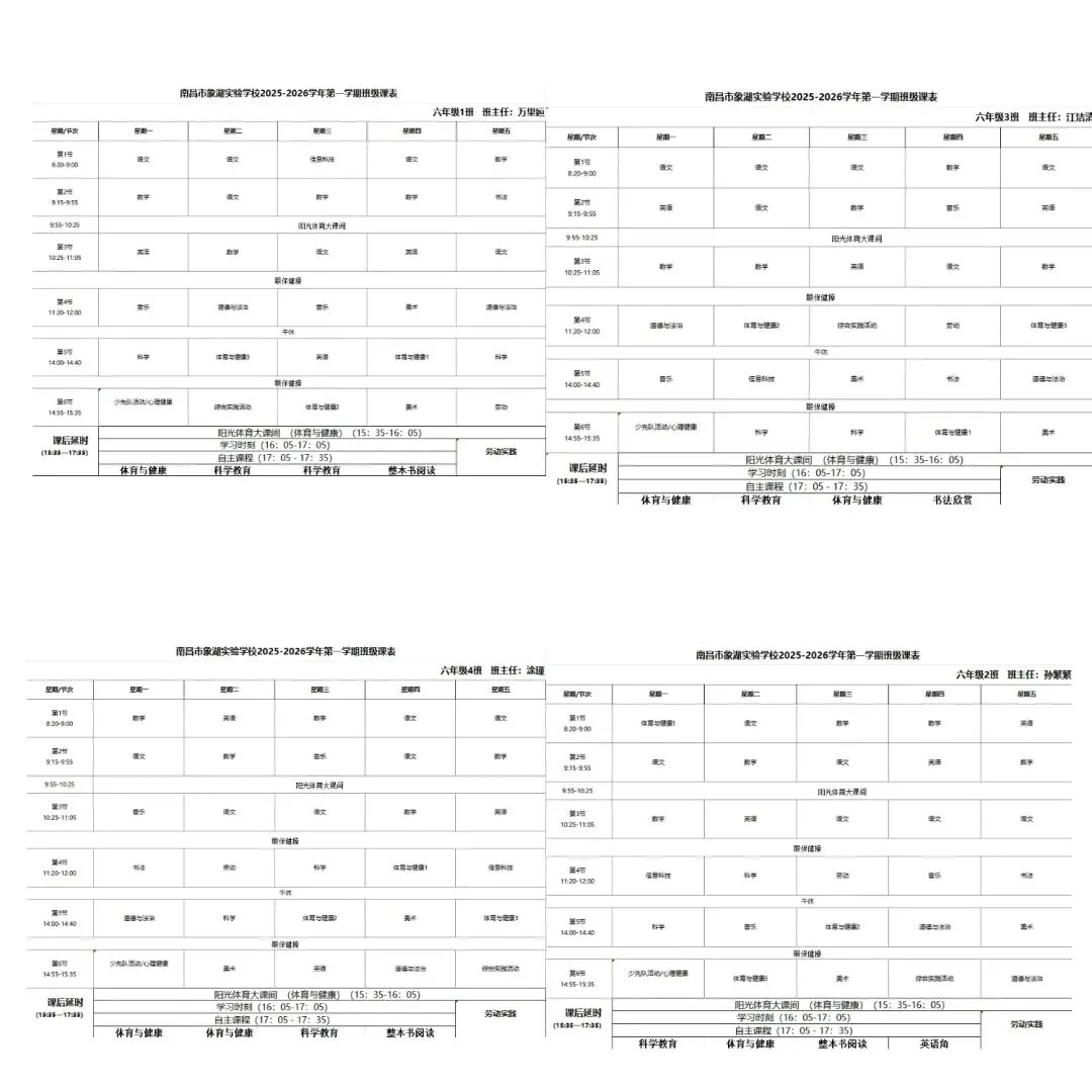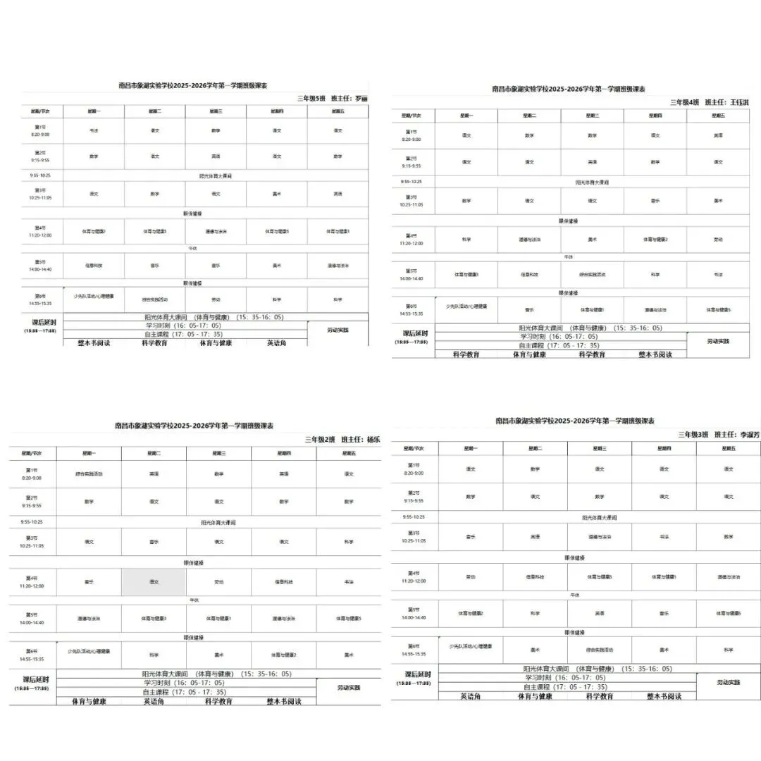 江西省人民政府办公厅关于全面加强和改进新时代学校体育工作的实施方案》《关于全面加强和改进新时代学校美育工作的实施方案的通知》《中共江西省委江西省人民政府关于全面加强新时代大中小学劳动教育的实施意见》及江西省教育厅相关文件要求,严格执行南昌市教育局《关于做好全市2026年春季学期中小学体美劳“保课时”工作的通知》部署,我校坚决推进“五育并举”,切实补齐体美劳教育短板,现将2025—2026学年度第二学期体美劳课程表正式公示,接受社会各界监督。
