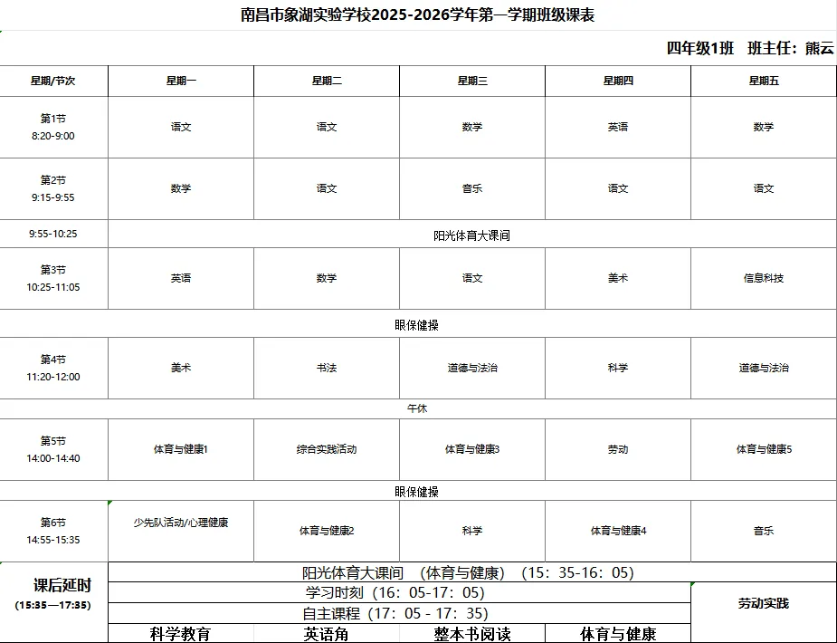 【向善教育】南昌市象湖实验学校2025-2026学年度第二学期体美劳“晒课表”