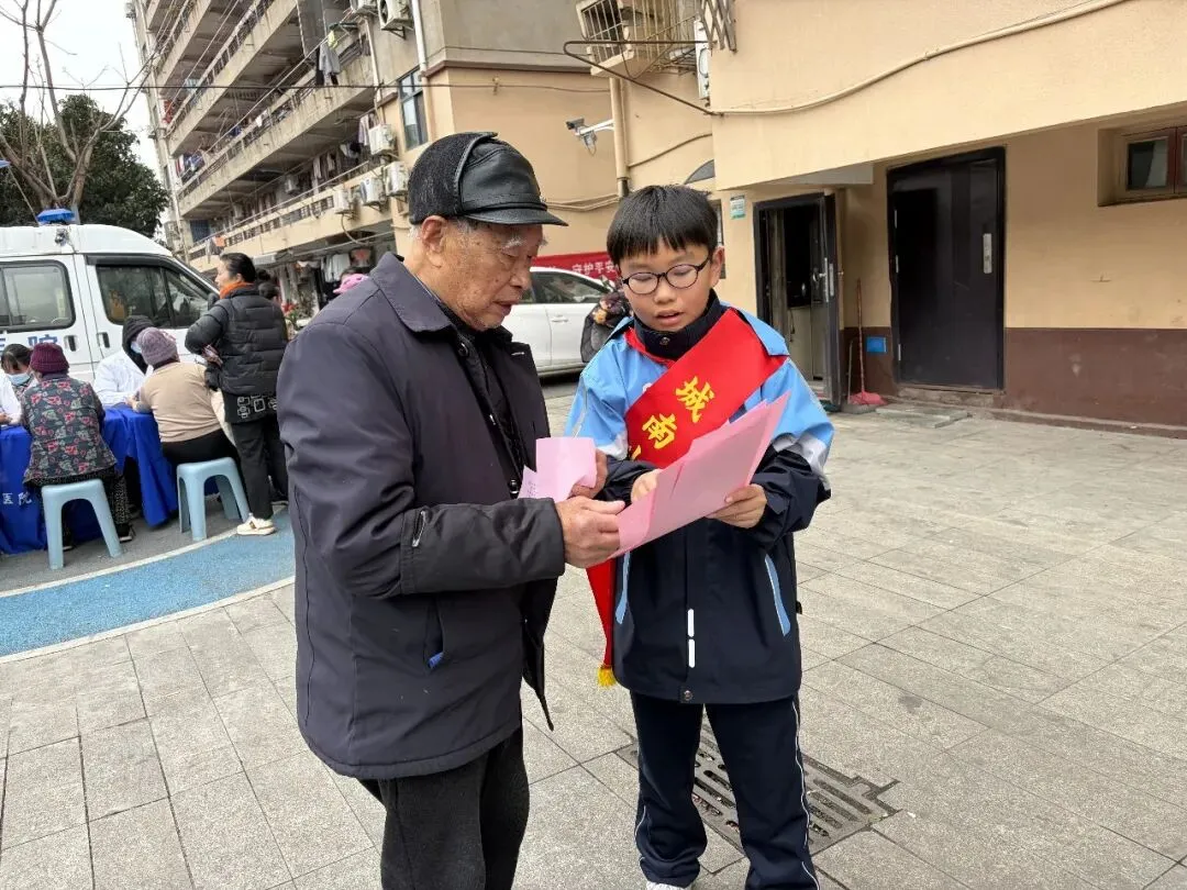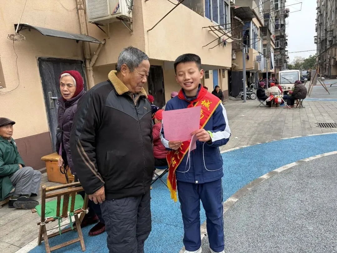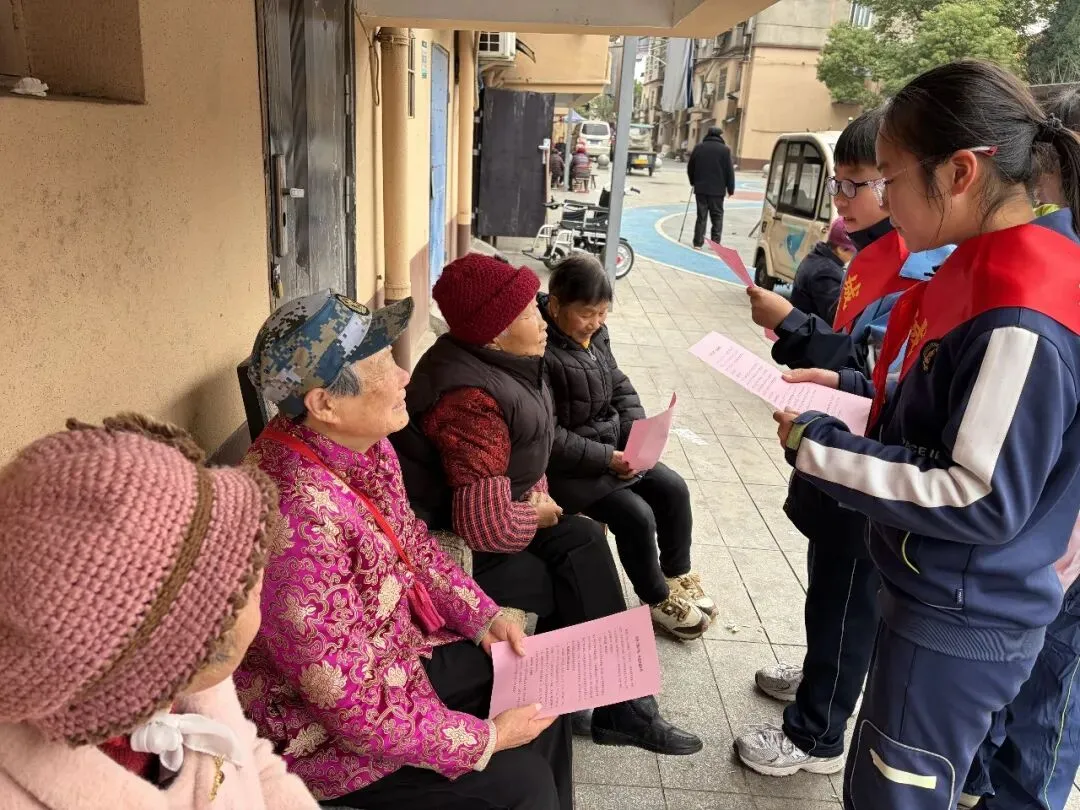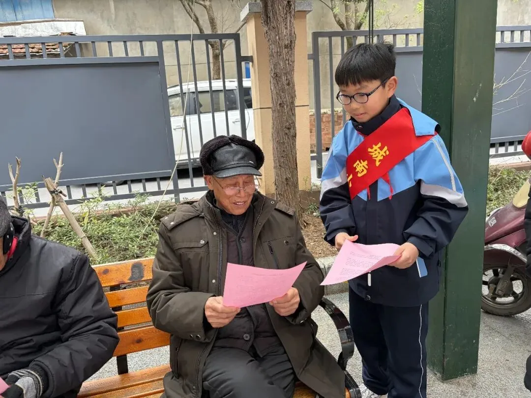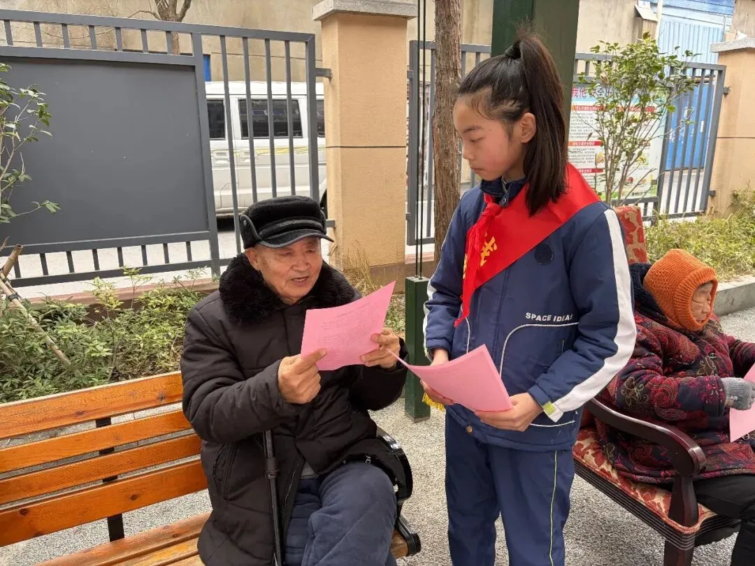 红领巾志愿者们还向过往居民分发无烟宣传单,耐心讲解吸烟危害,倡导绿色健康、文明无烟的生活方式。在社区活动场所,队员们主动来到爷爷奶奶身边,亲切地陪老人聊天说话,为他们捶背揉肩、送上温暖关怀,用稚嫩却真诚的举动传递孝心与爱心。一幕幕温馨的场景,一个个忙碌的身影,让雷锋精神在实践中闪光,让文明新风在社区传递。