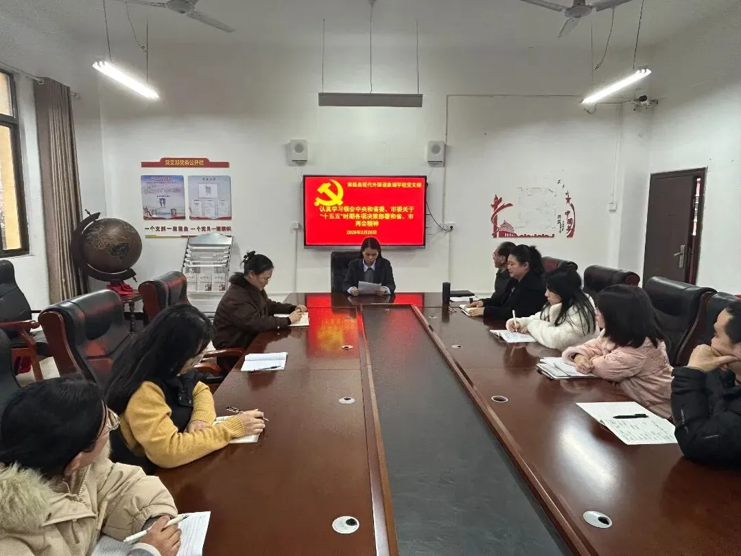 开展专题学习,由万平珍领学。认真学习领会中央和省委、市委关于“十五五”时期各项决策部署和省、市两会精神,结合实际谋划贯彻落实举措。同时,要学习贯彻二十届中央纪委五次全会精神,开展党风廉政警示教育,筑牢拒腐防变思想防线。针对所学内容,结合实际交流研讨。