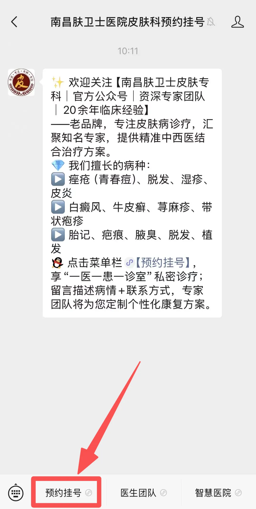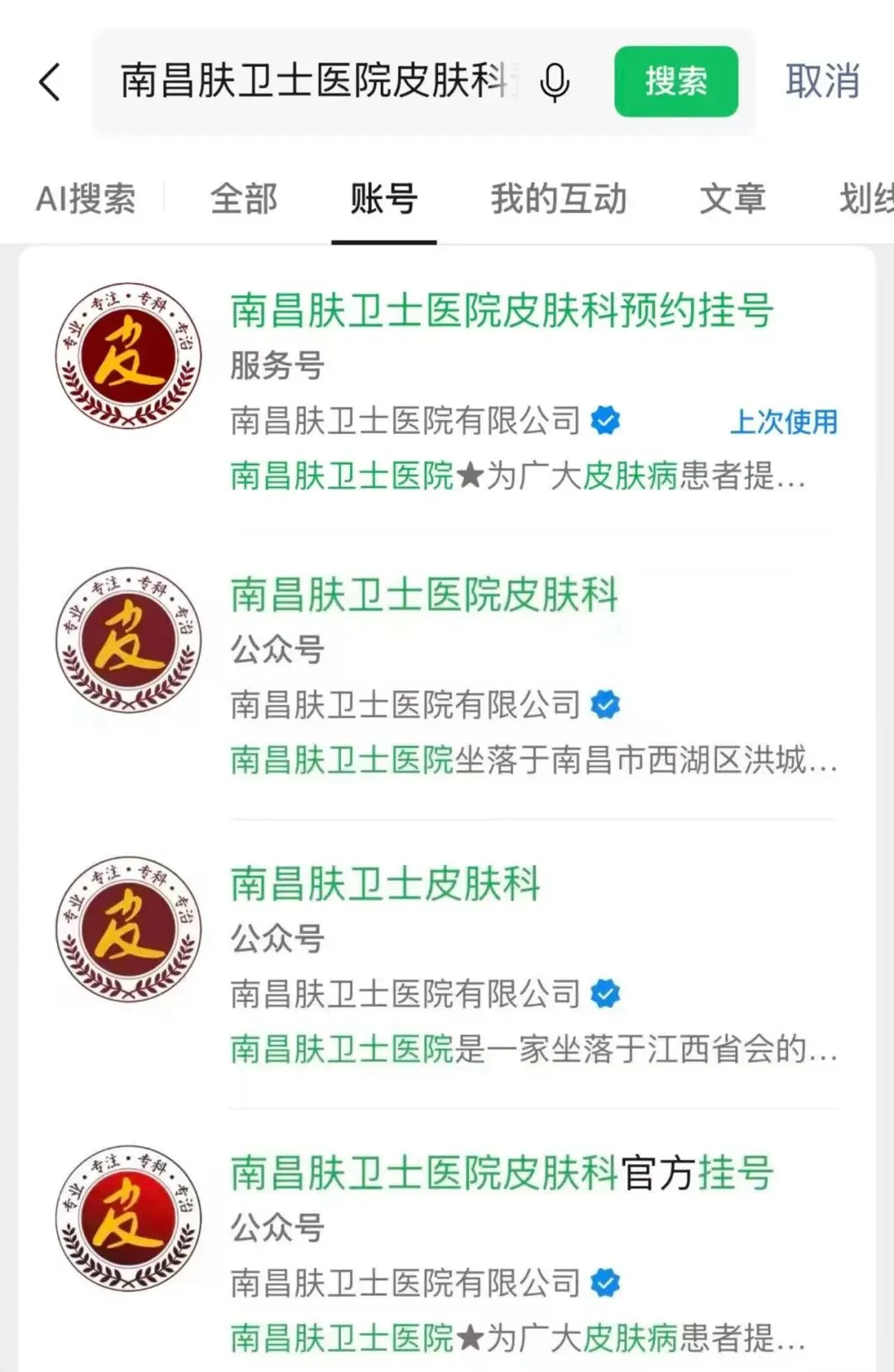 微信搜索【南昌肤卫士医院皮肤科】,关注官方服务号或公众号。
