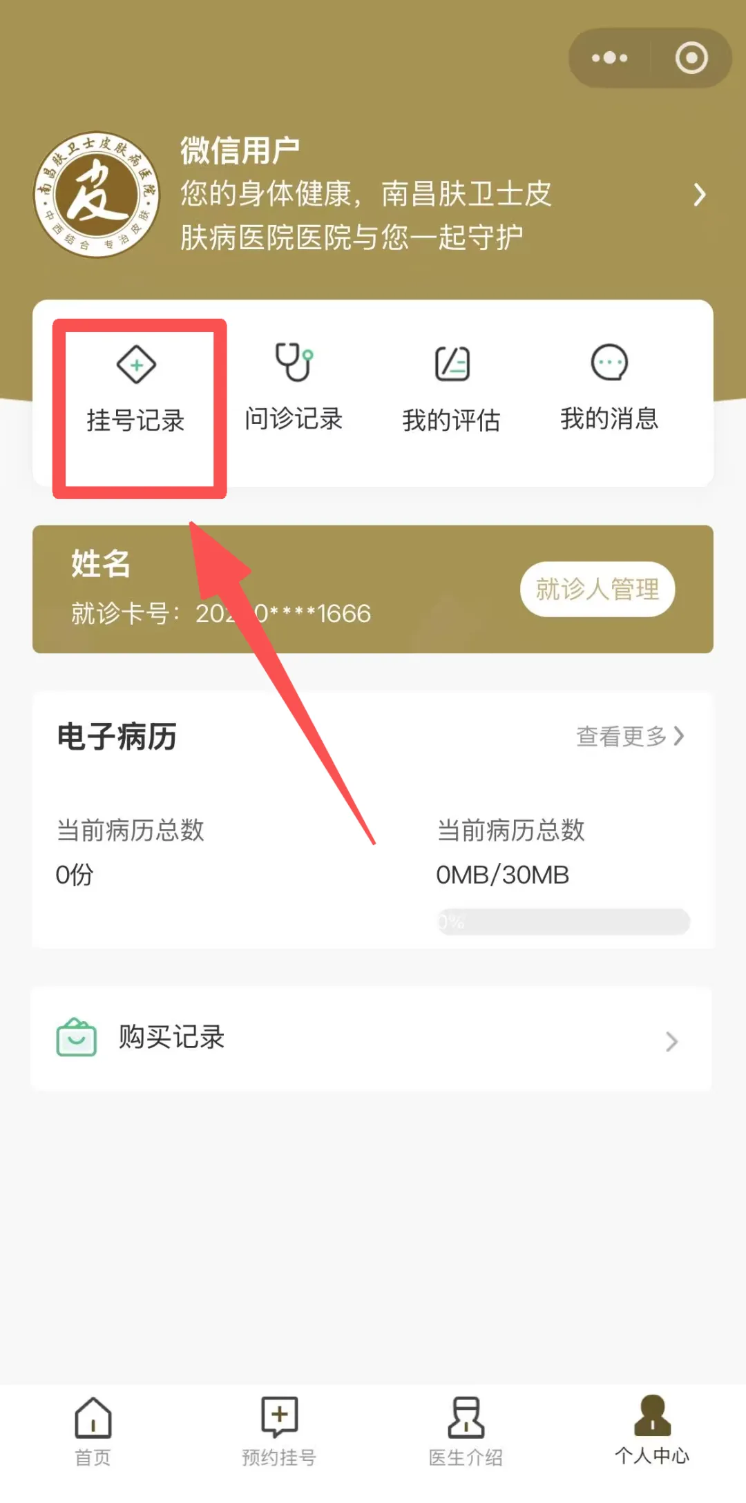 在小程序主页下方“个人中心”,点击挂号记录,即可查看。