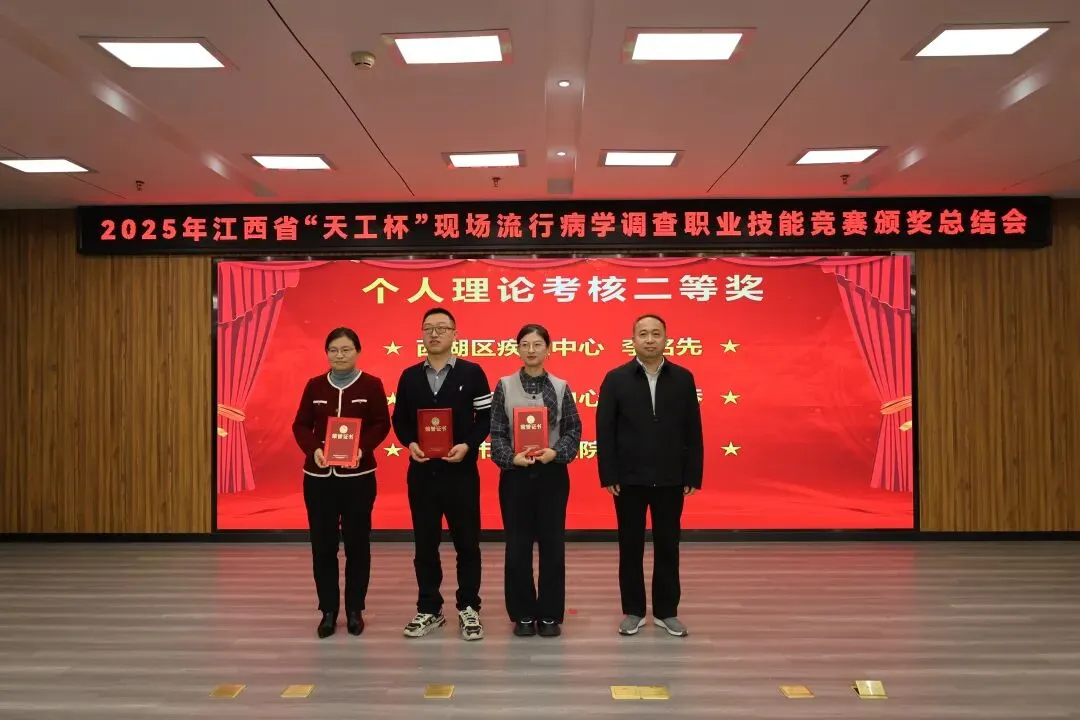 经过一天紧张激烈的角逐,在选手的共同努力下,我市代表队荣获团体一等奖;选送的4名选手全部获奖:西湖区疾控中心李铭先荣获个人综合、技能考核两个一等奖、个人理论考核二等奖,市第一医院邓媛媛荣获个人理论考核二等奖、个人综合考核优秀奖,南昌市疾控中心(市卫健执法局)童小琴荣获个人技能考核三等奖、个人综合和理论优秀奖,红谷滩区妇幼保健院万常鸽荣获个人技能优秀奖。