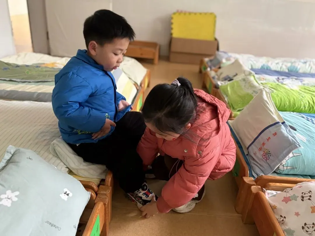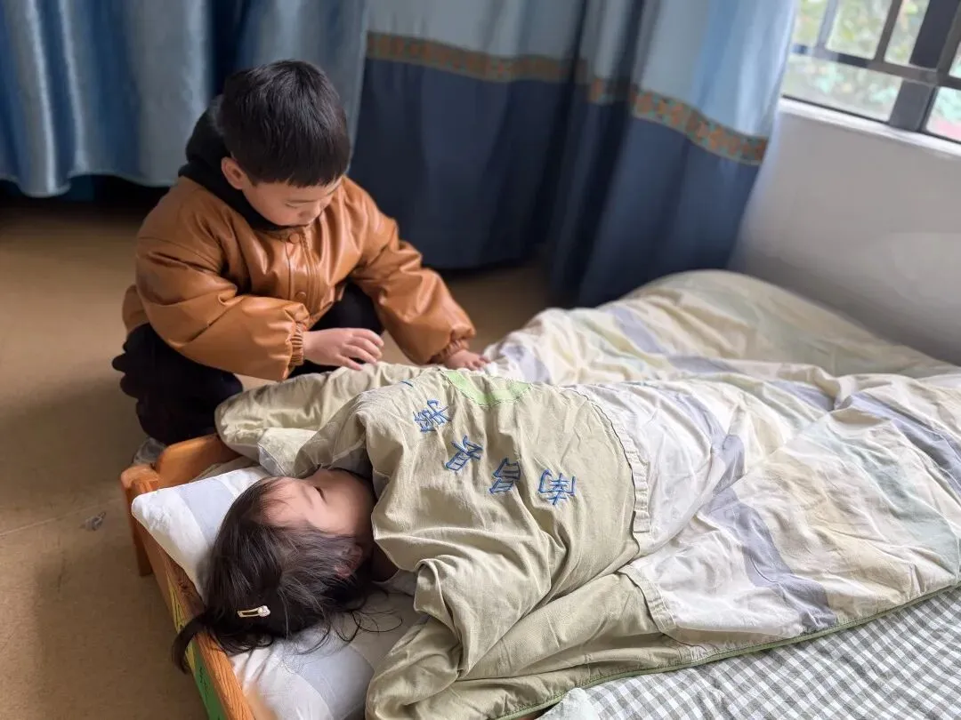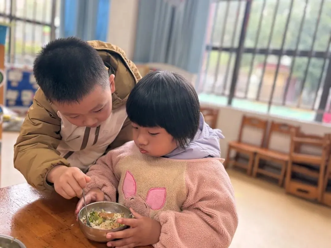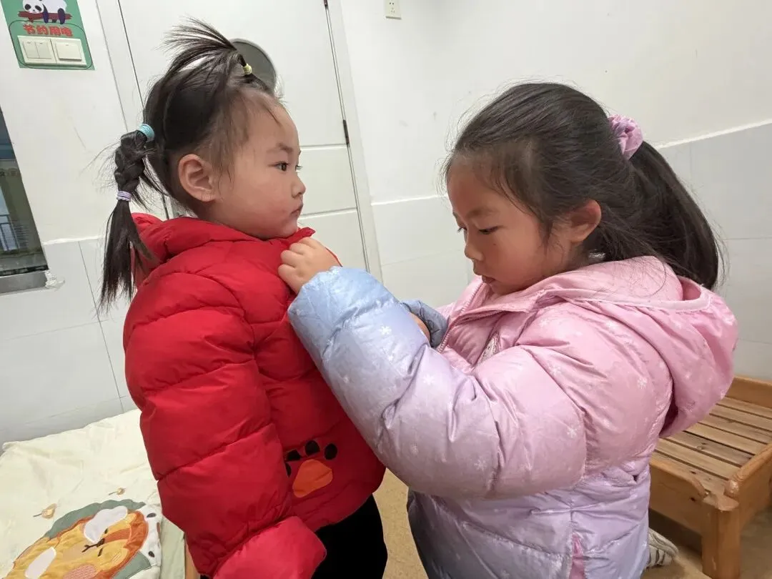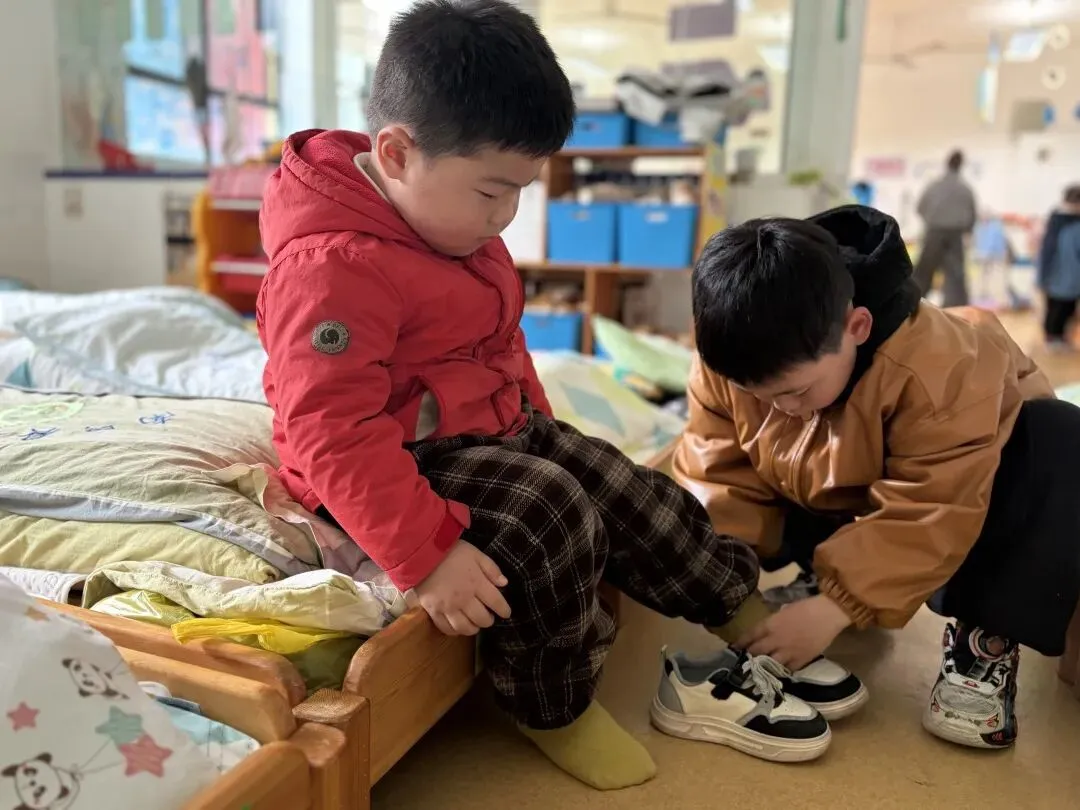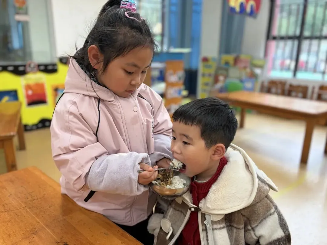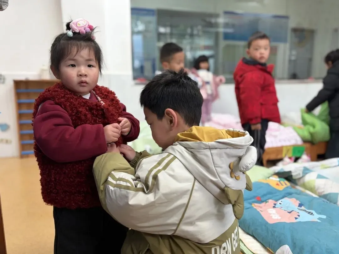午睡起床后,大班的哥哥姐姐主动化身暖心小帮手,来到小班照顾弟弟妹妹。他们耐心地帮弟弟妹妹穿衣、穿鞋子、盖被子,还细心地喂饭,在一声声稚嫩的感谢里,孩子们的脸上写满自豪与开心,用最纯真的行动,温暖传递着雷锋精神。