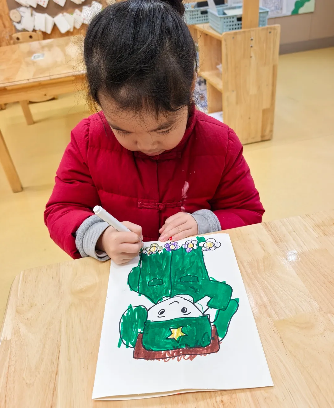 听了雷锋的故事,孩子们拿起画笔,认真描绘出心中的雷锋叔叔。一幅幅稚嫩可爱的画作,承载着对雷锋叔叔的崇敬与爱戴。