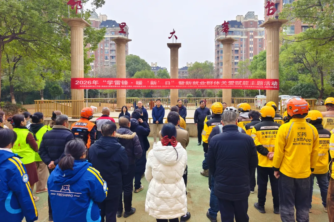 2026年“学雷锋·暖‘新’日”暨新就业群体关爱赋能主题活动,在八月湖街道象北社区广场温情启幕。