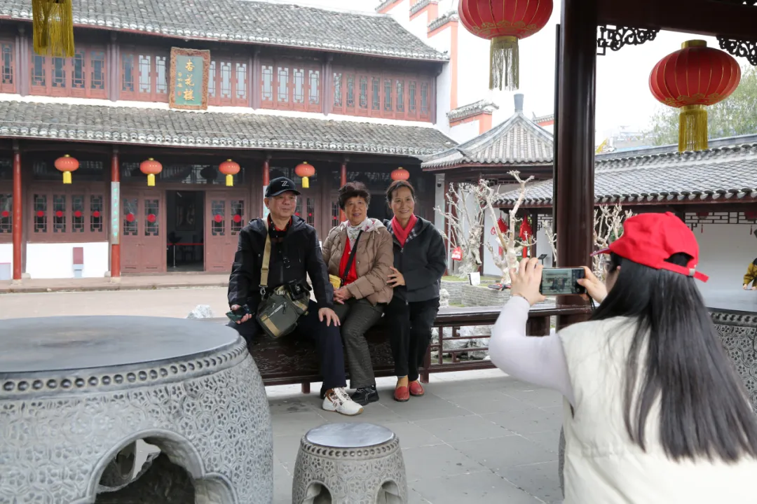 “来,大家看镜头,笑一笑!”“三、二、一,茄子!”……杏花楼内春意盎然,志愿者们主动上前,为有需要的游客提供拍照服务。用镜头定格下一张张灿烂的笑脸和一幅幅“杏楼春韵”的美好画面。