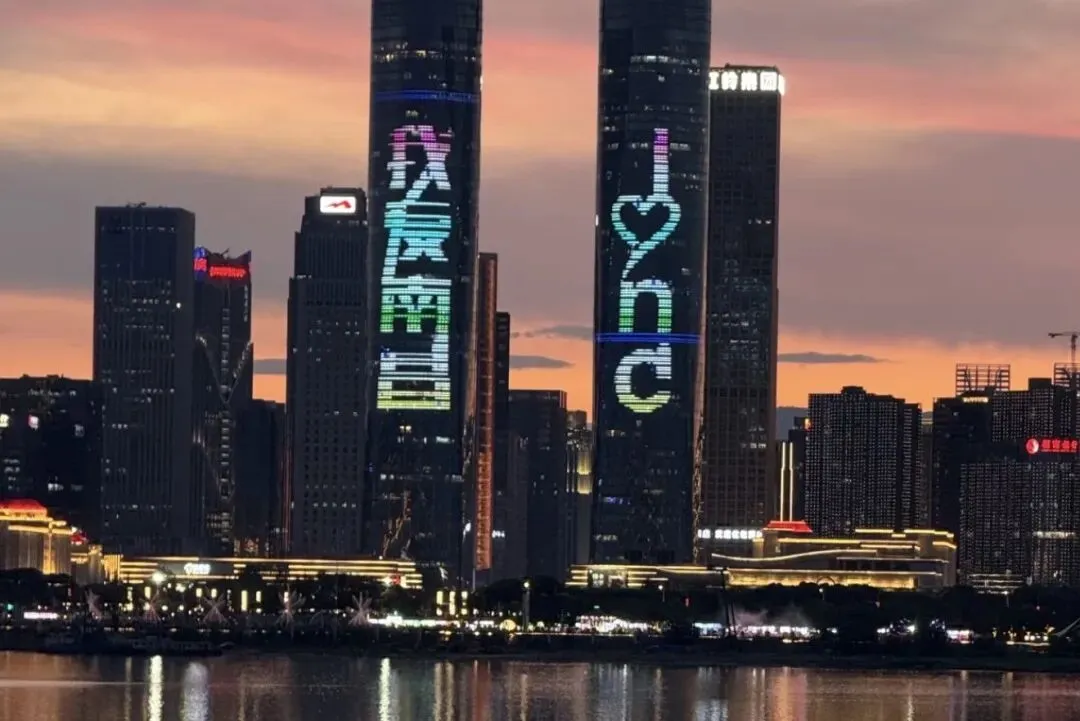 双子塔霓虹映波