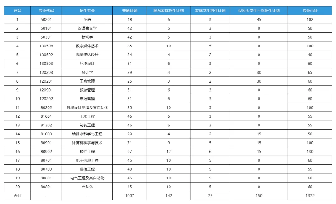 南昌大学科学技术学院招生计划2026年学院专升本总招生计划1472人,其中普通计划1007人、脱贫家庭招生计划142人、获奖学生招生计划73人、退役大学生士兵招生计划150人,另设联合培养计划100人(车辆工程专业),联合培养学生在合作院校就读。