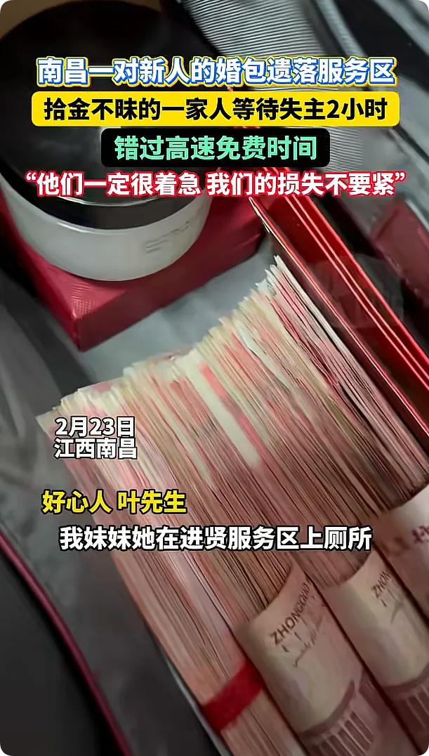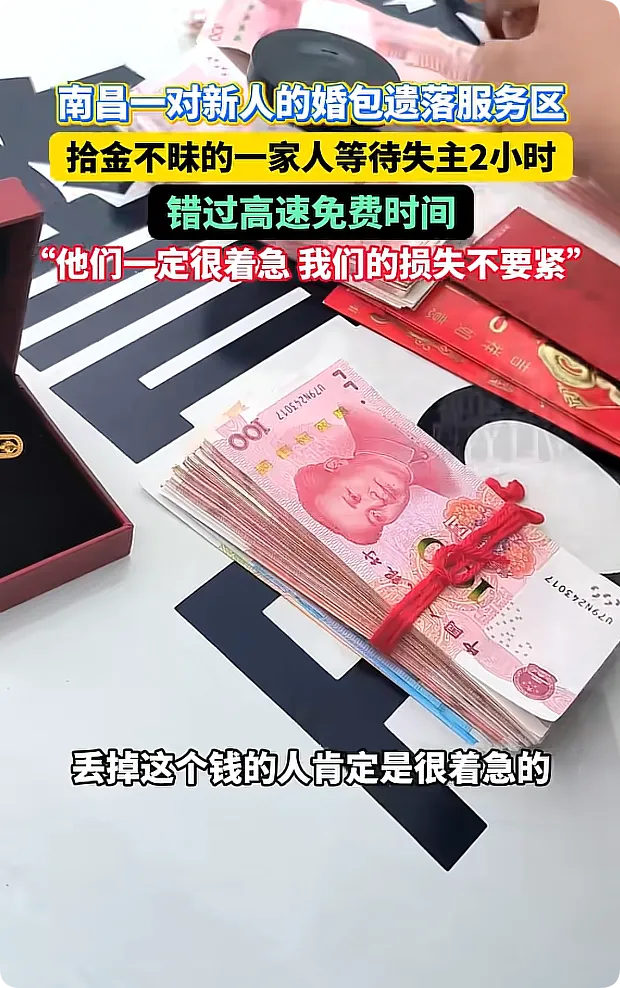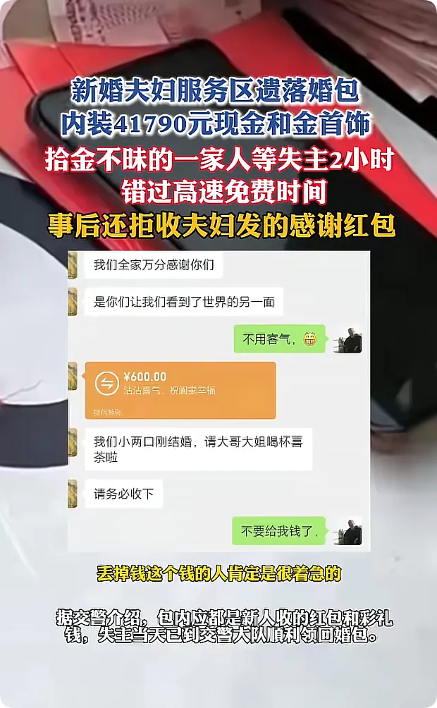 高速服务区捡到装满现金的婚包,一家人原地苦等两小时,宁可错过高速免费也不占一分便宜。