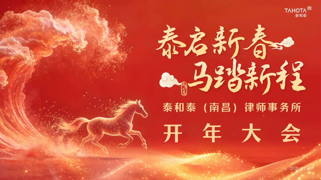 泰启新春,马踏新程。3月5日,惊蛰之日。在生机涌动、万物竞发的美好时节,泰和泰(南昌)律师事务所全体同仁齐聚一堂,隆重召开2026开年大会。本次会议紧扣事务所发展实际,聚焦新一年的战略目标,凝聚共识、马上行动。