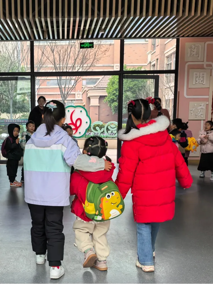 清晨的校园,处处是温柔的风景。大班的哥哥姐姐化身“爱心小天使”,主动牵起小班弟弟妹妹的小手,帮忙拎起小书包,轻声细语安抚情绪。一句句关心、一次次搀扶,让陌生变得熟悉,让不安化为安心,在互相陪伴中,孩子们学会了关爱与担当。