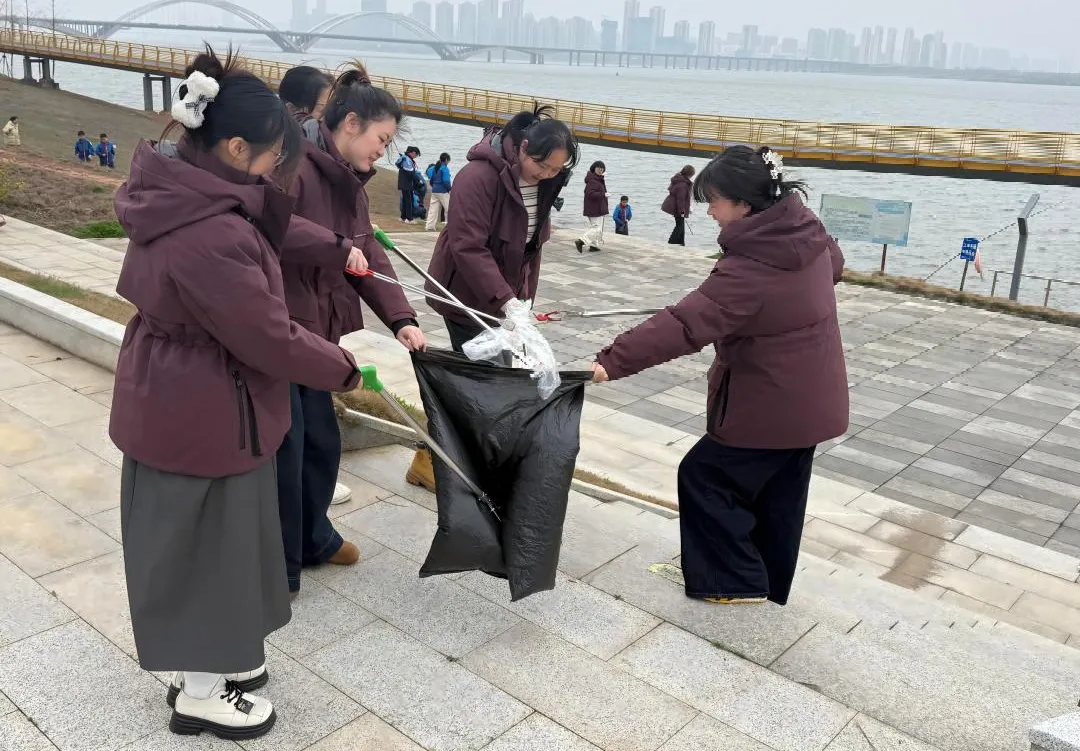 我院联合悦城西社区开展“洁净赣江岸,文明伴我行”志愿服务,沿赣江岸认真清理垃圾、整治卫生死角,耐心向群众宣传环保与文明理念。大家团结协作、甘于奉献,以实际行动守护母亲河与生态家园,彰显师者担当。