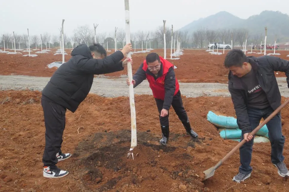 活动现场,金乔园林公司党员志愿者化身“绿色导师”,为市发改委党员志愿者带来专业详尽的植树护绿现场教学。在“绿色导师”的悉心指导下,大家三五成组、分工协作、默契配合,挥锹铲土、扶苗填坑、提水浇灌……现场一派热火朝天的繁忙景象。经过一上午的辛勤劳作,数百株新栽的朴树、无患子等特色园林乡土苗木在春风中昂然挺立,为初春的大地增添了一抹生机盎然的绿意。