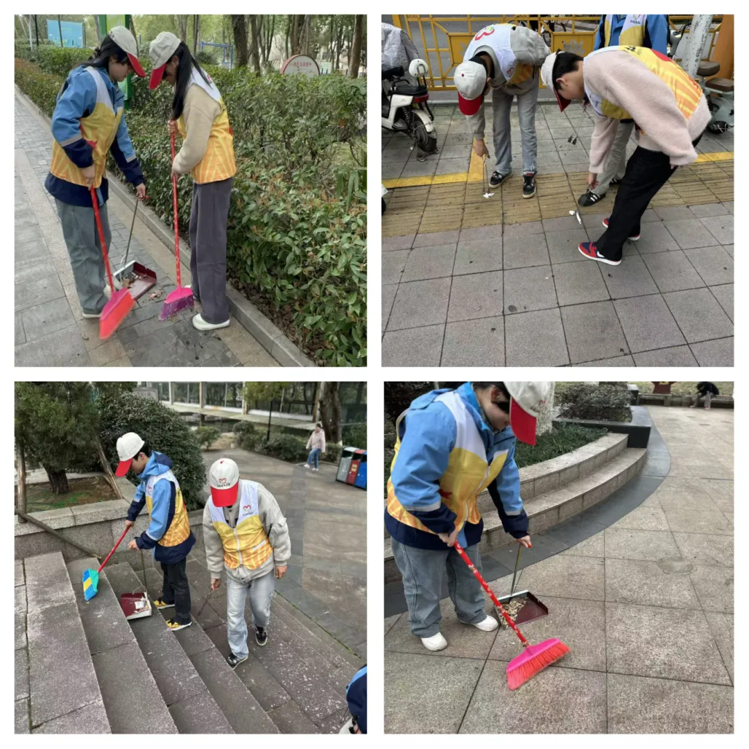 理论学习之余,下午1时,校团委组织12名学生志愿者走进人民公园社区,开展卫生清扫活动、环境卫生整治行动。志愿者们手持扫帚、垃圾袋、镊子等工具,分组清理社区道路、绿化带及公共设施上的垃圾。五中的学生用实际行动为社区环境改善贡献力量,展现了当代青少年的社会责任感。